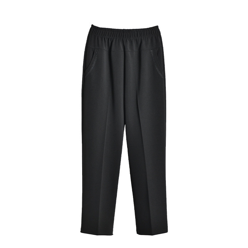 妈妈裤子春秋款松紧高腰弹力中老年女裤宽松大码直筒奶奶加绒长裤