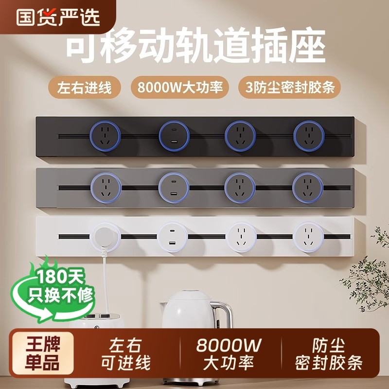 移动轨道插座明装插座电力滑动导轨电源客厅卧室厨房大功率排插