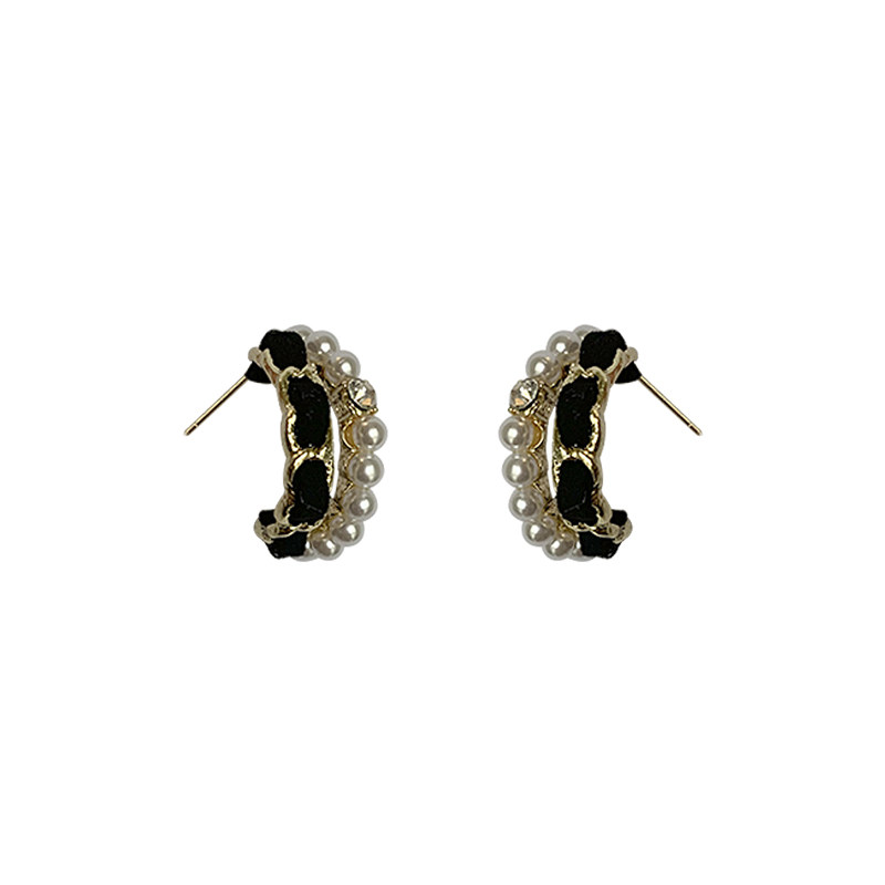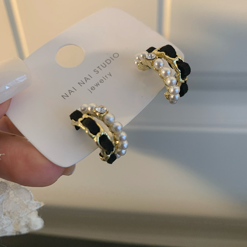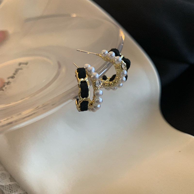 黑色丝绒小香风耳圈~珍珠轻奢高级感耳环女气质个性耳钉复古耳饰