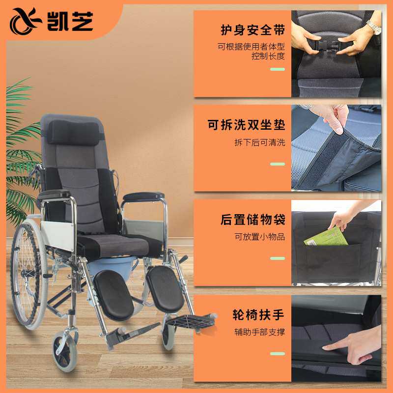 弘泰康老年人手动轮椅折叠轻便带坐便器多功能残疾人专用代步车