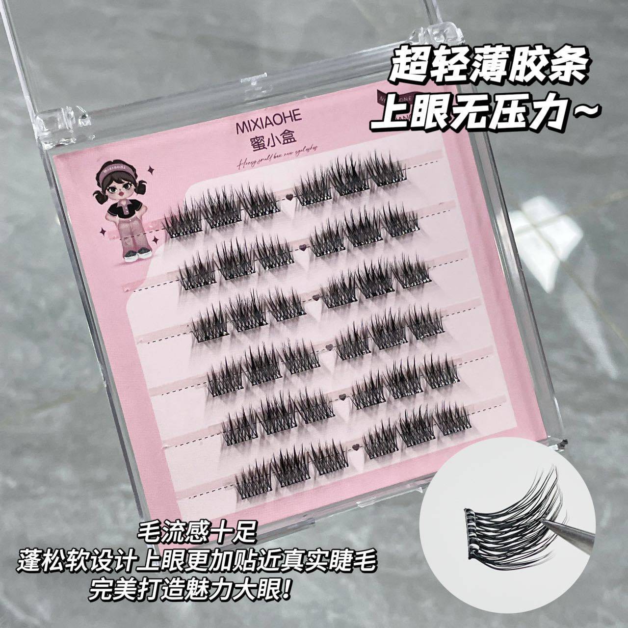 早八党免胶假睫毛自然仿真妈生感蒲公英睫毛放大双眼单簇二部曲女