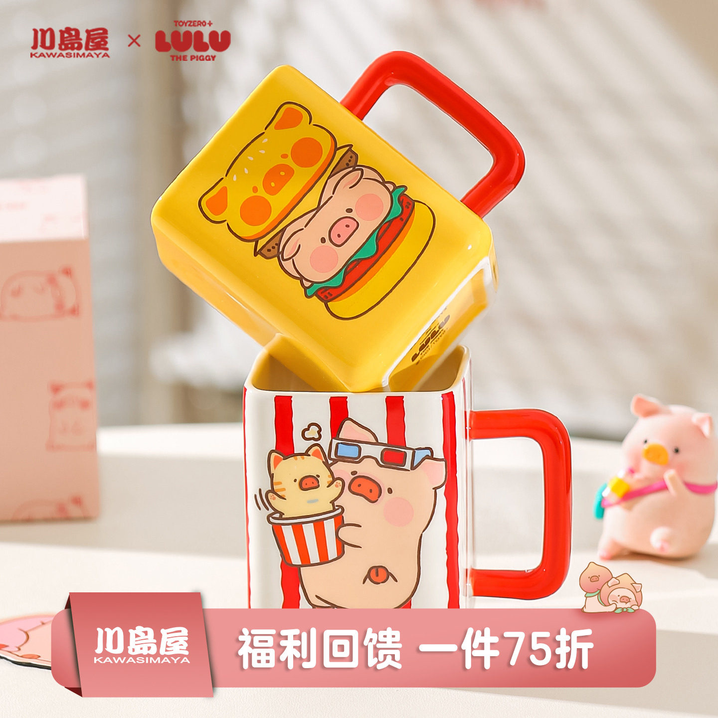 川岛屋&lulu猪联名 可爱马克杯陶瓷喝水杯家用咖啡杯子女生日礼物