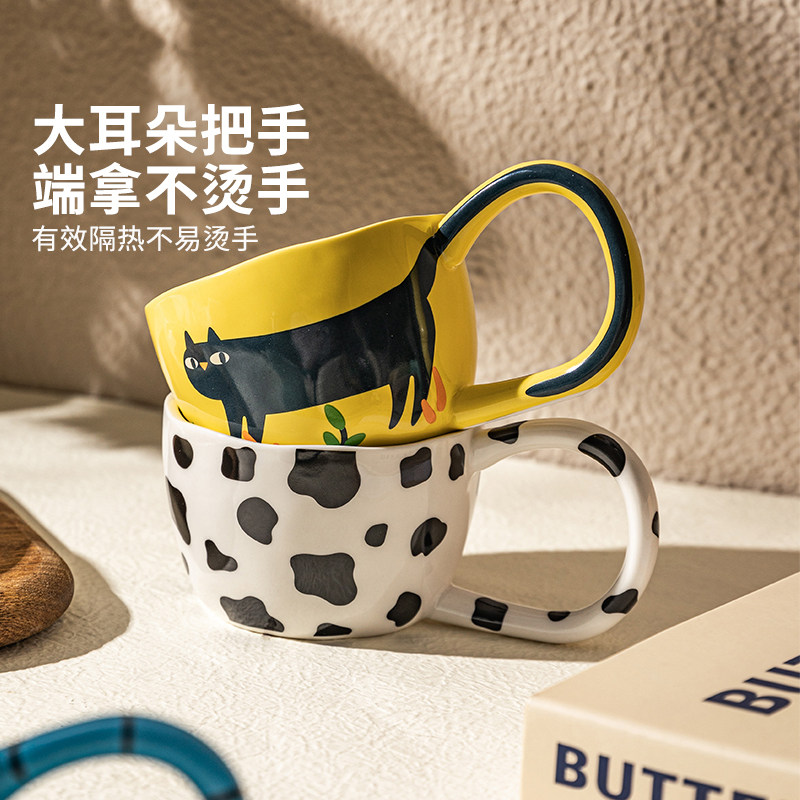 可爱喵咪马克杯家用喝水杯子大耳朵陶瓷情侣杯生日礼物早餐咖啡杯