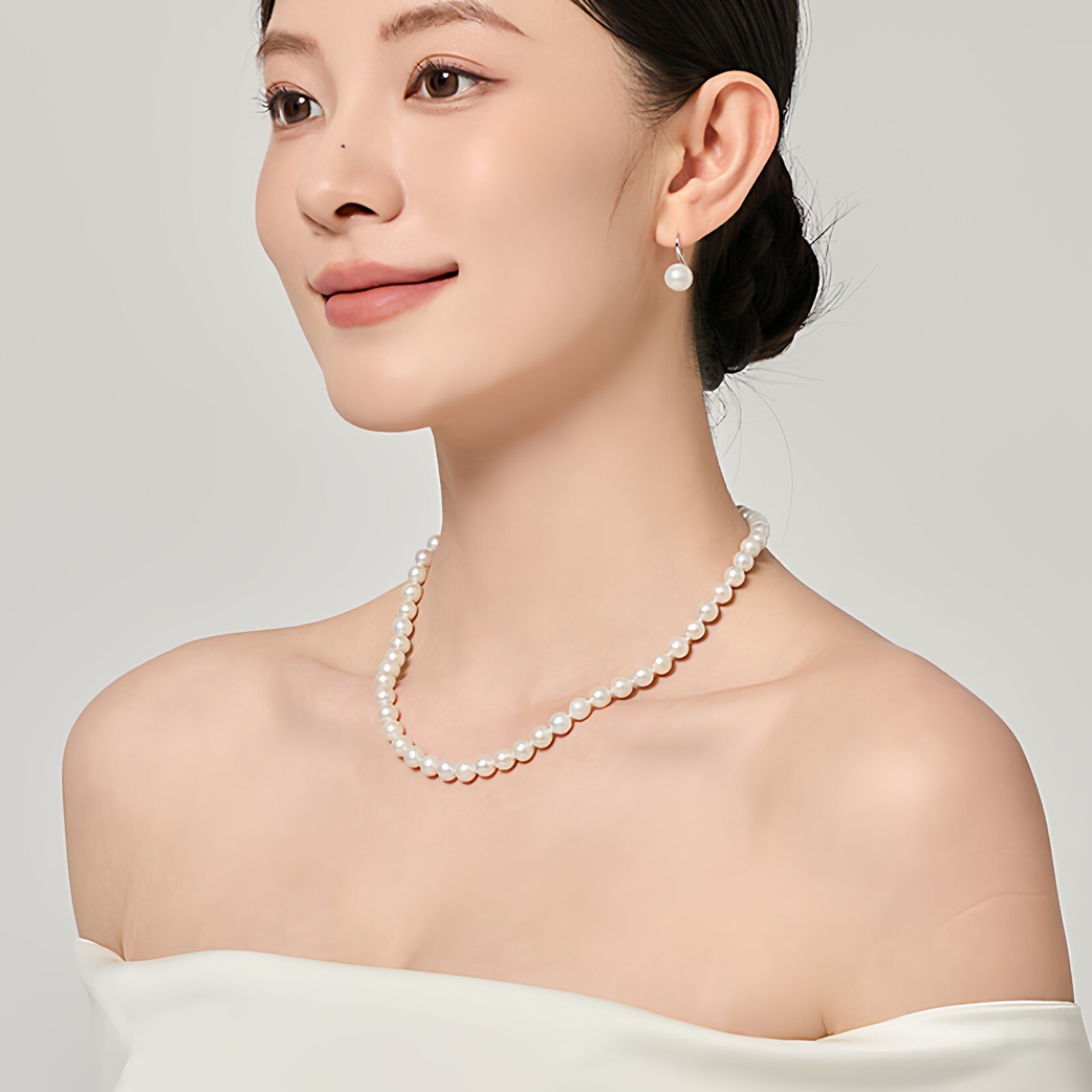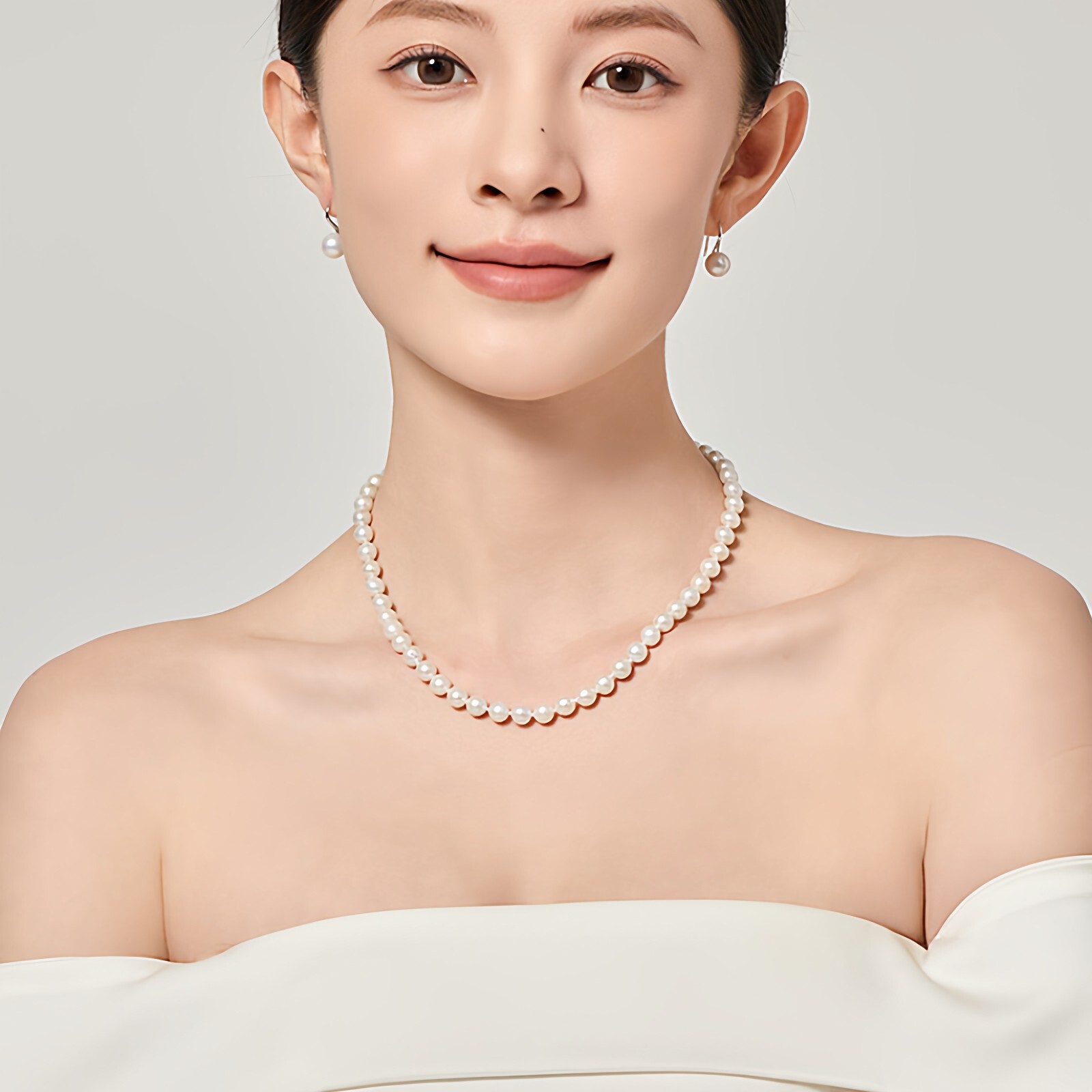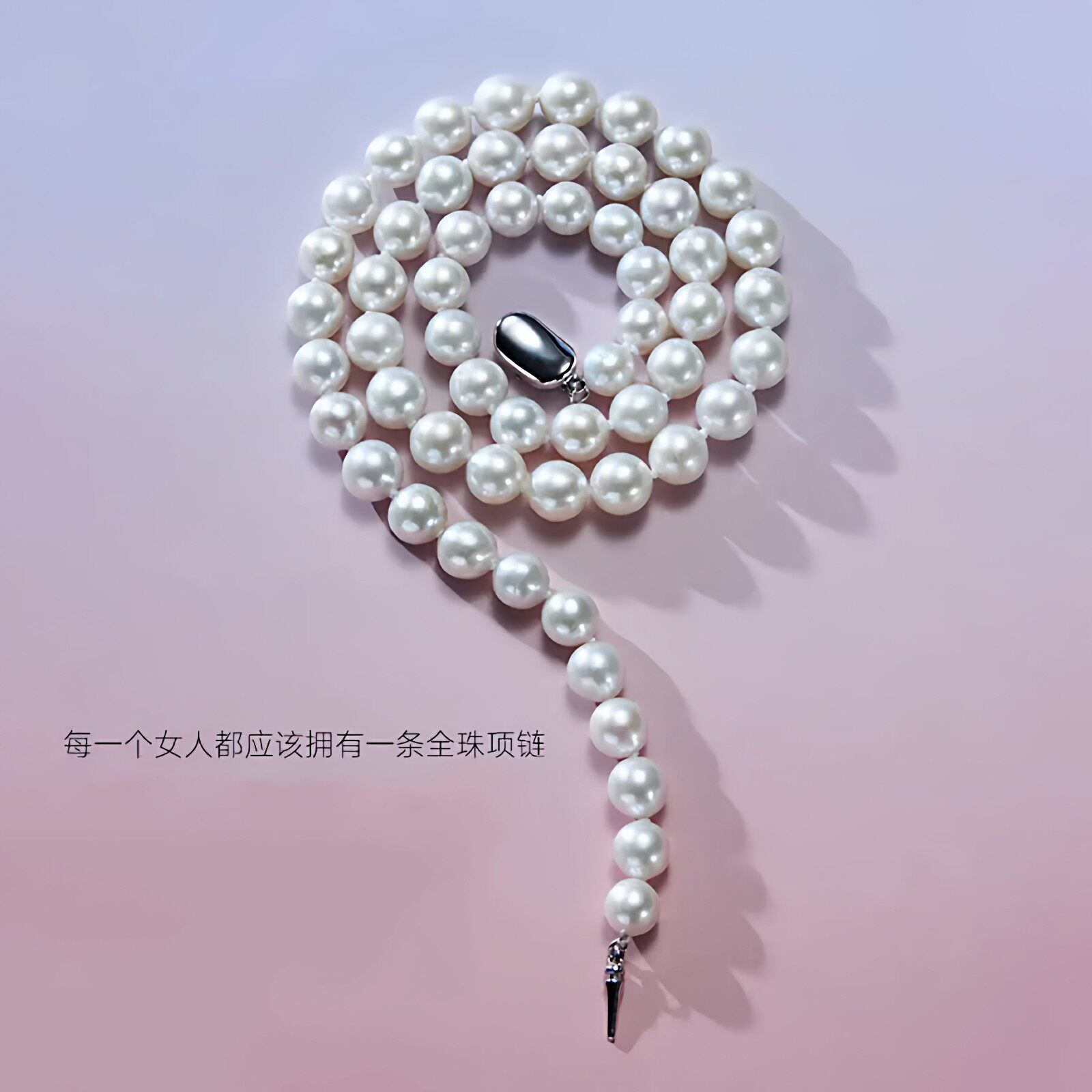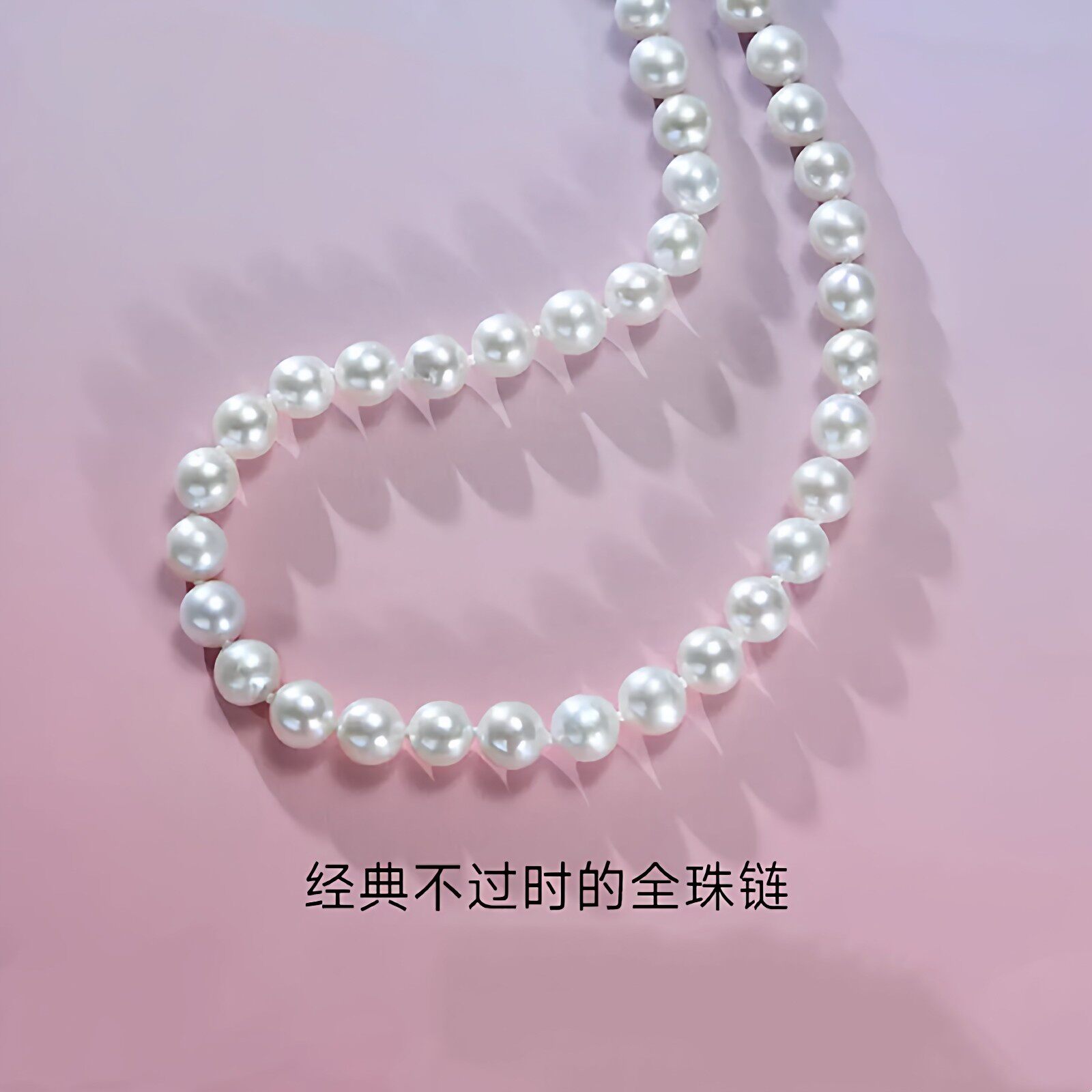 诸暨淡水珍珠项链女S925银近圆强光经典全珠链优雅气质百搭不挑人