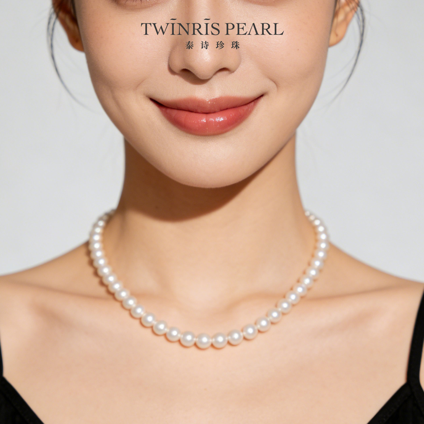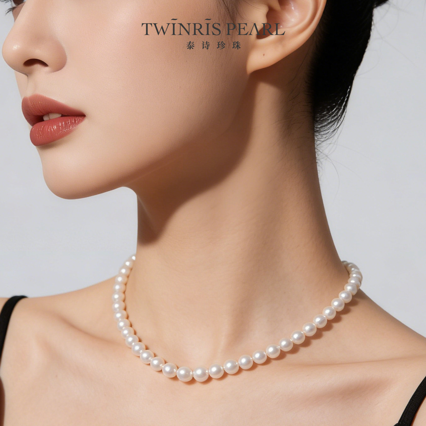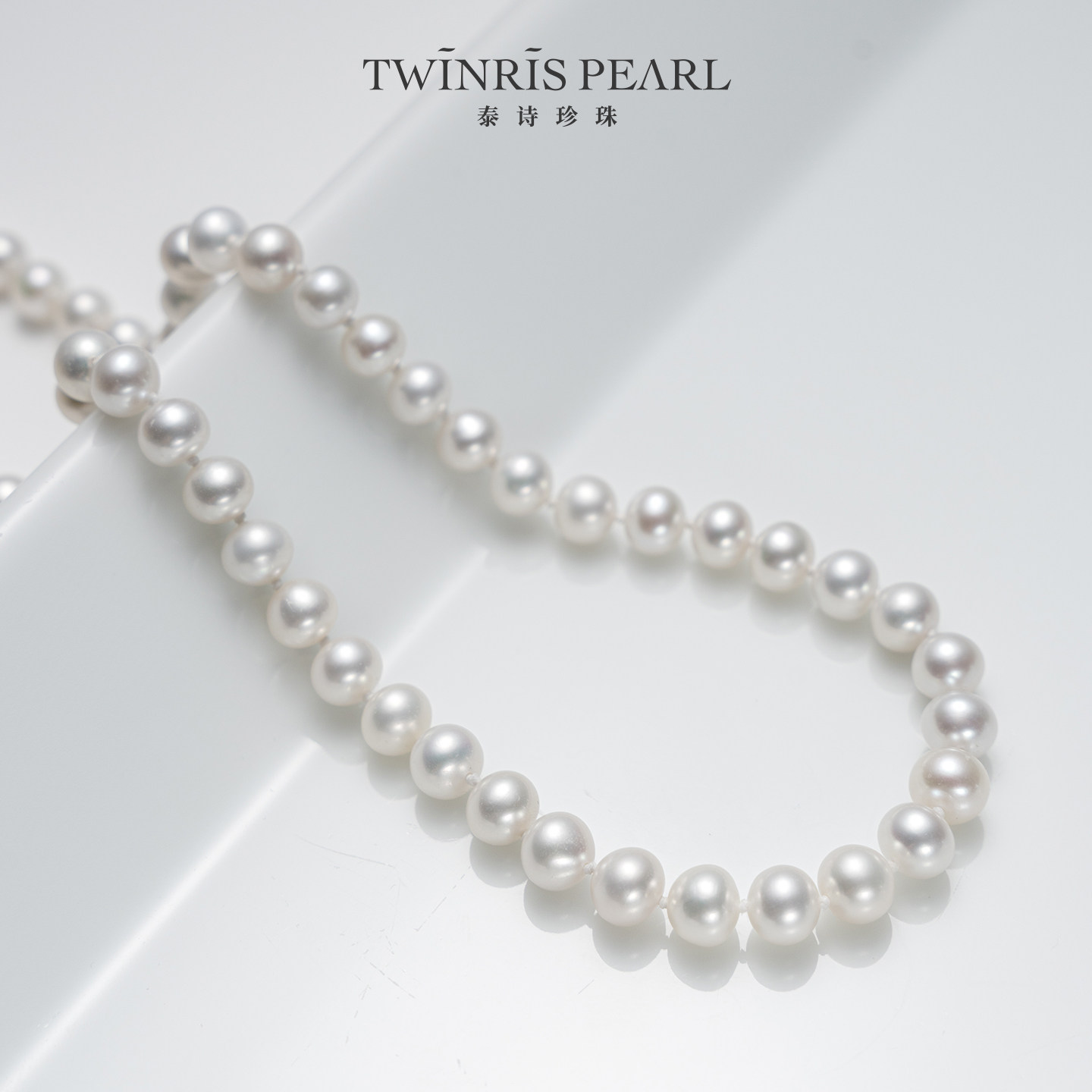 泰诗珍珠白月光抽拉链珍珠项链淡水珠宝首饰无核实用长辈正圆