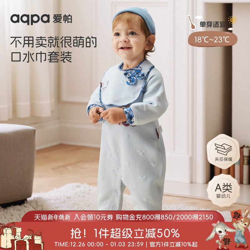 aqpa爱帕婴儿衣服夹棉秋冬保暖小月龄宝宝连体衣哈衣睡衣外出服萌