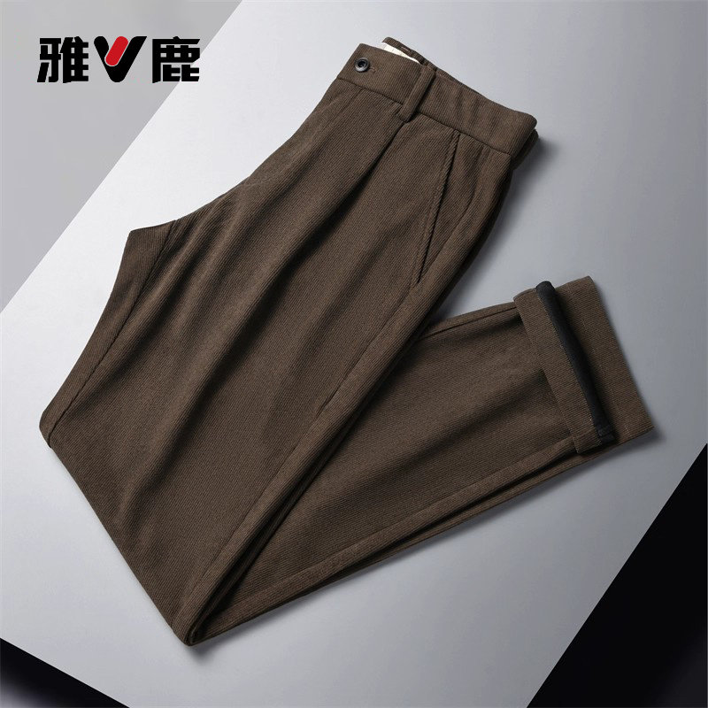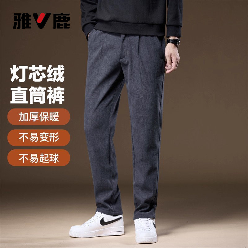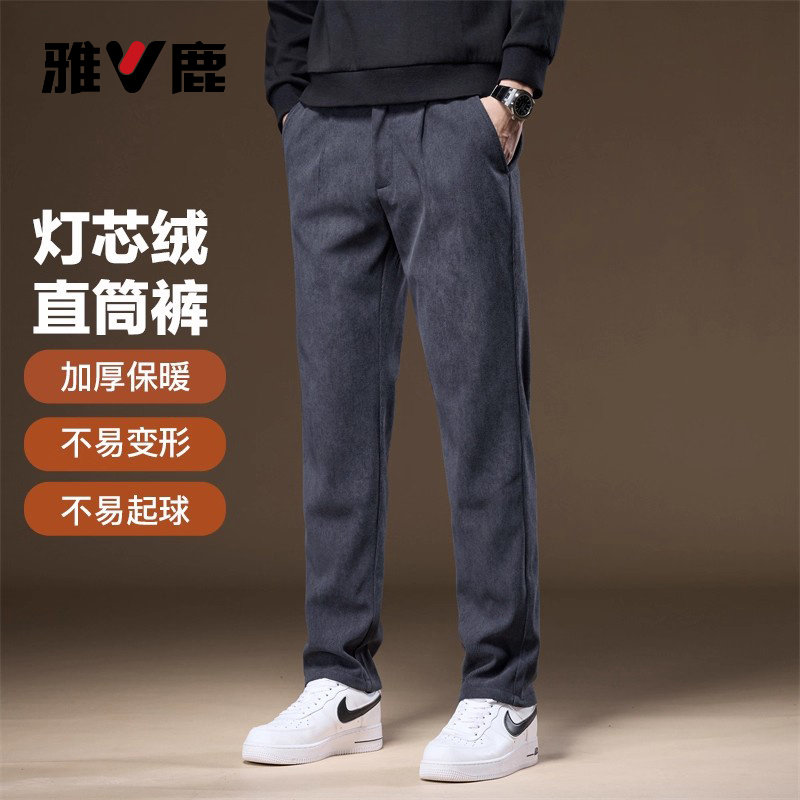 雅鹿休闲裤男秋冬新款松紧腰灯芯绒直筒裤男宽松加绒加厚裤子男