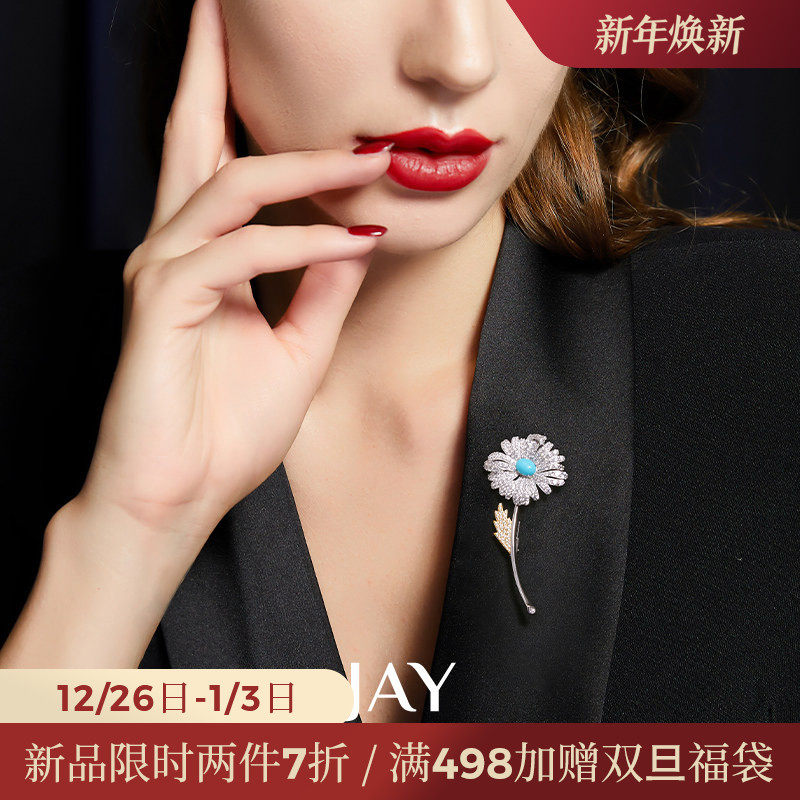 JAY花开雏菊925银胸针高级感轻奢小众别针高端精致时尚衣服配饰