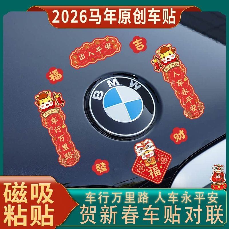 2026新年马年汽车磁吸对联过年出入平安车贴迷你春节对联防水装饰