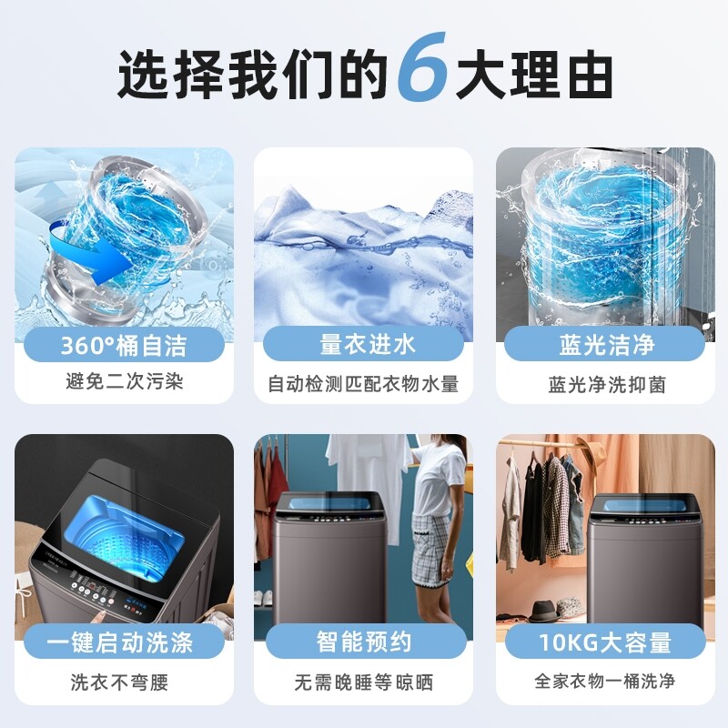 志高洗衣机全自动10/12KG小型波轮大容量租房宿舍洗烘一体家用