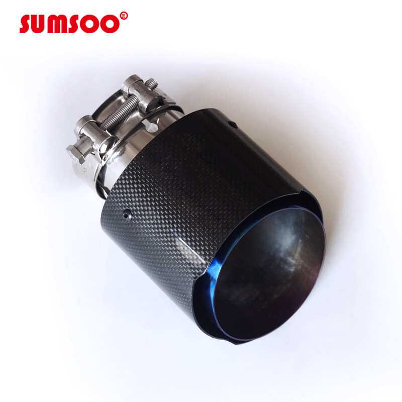 厂家供应排汽车排气改装101口径单出烤蓝消声器碳纤维尾喉