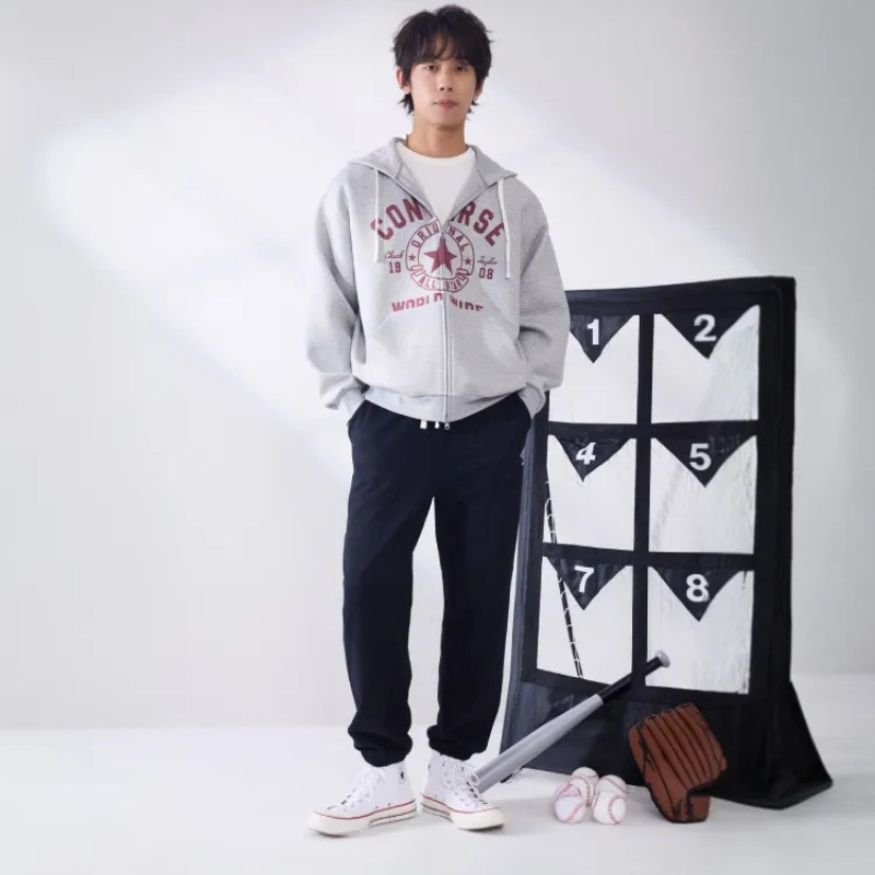 Converse匡威男裤春拼接感绒面印花运动风束脚卫裤长裤MCJ446-023