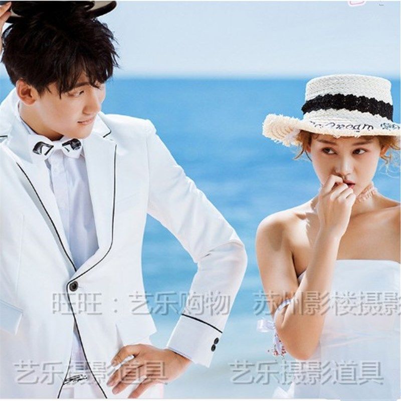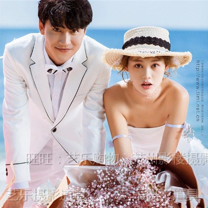 新品乳白色帽子海j景遮阳草帽外景旅拍草帽影楼婚纱拍摄影道具草