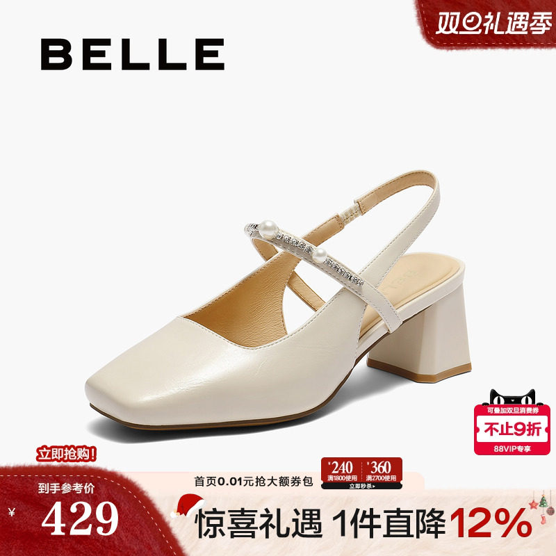 百丽包头后空凉鞋2025夏季新款一字带粗跟玛丽珍单鞋子D8D1DBH5