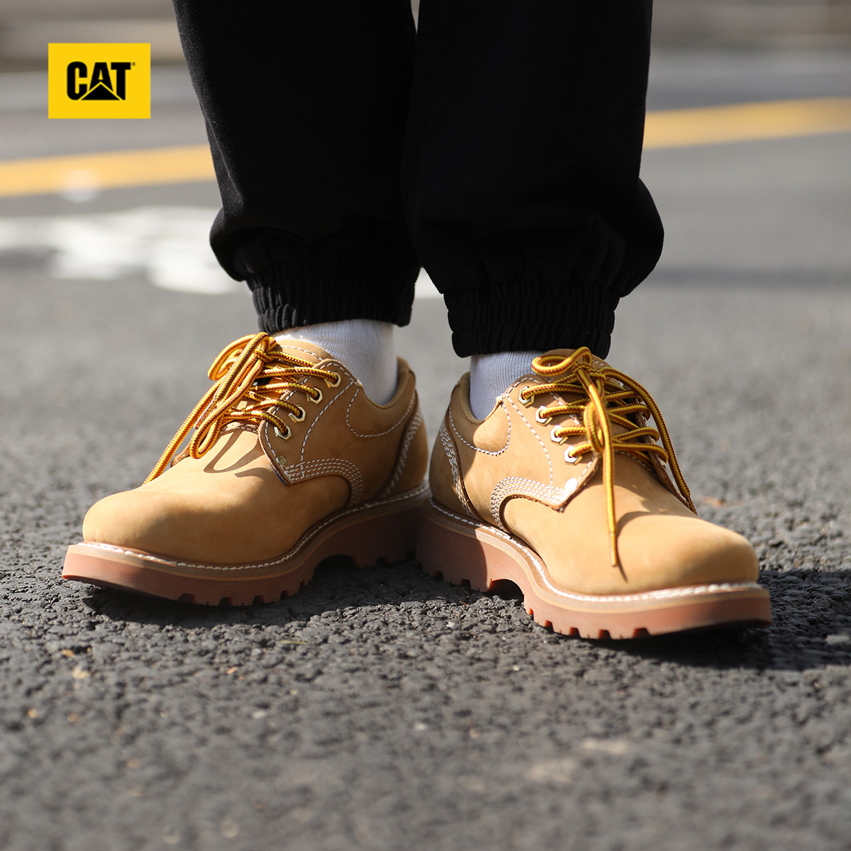 CAT卡特春季新品男士固特异结构牛皮革低帮黄靴皮鞋大头德比鞋