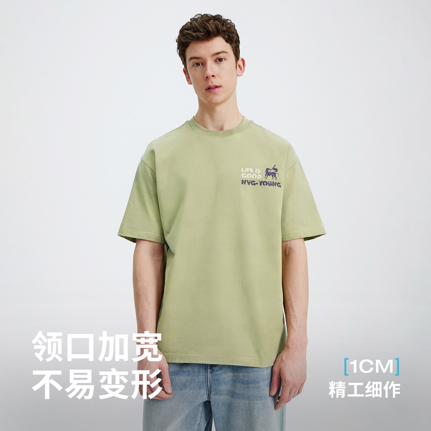 Navigare意大利小帆船绿色短袖圆领T恤男2026春季纯棉套头体恤衫