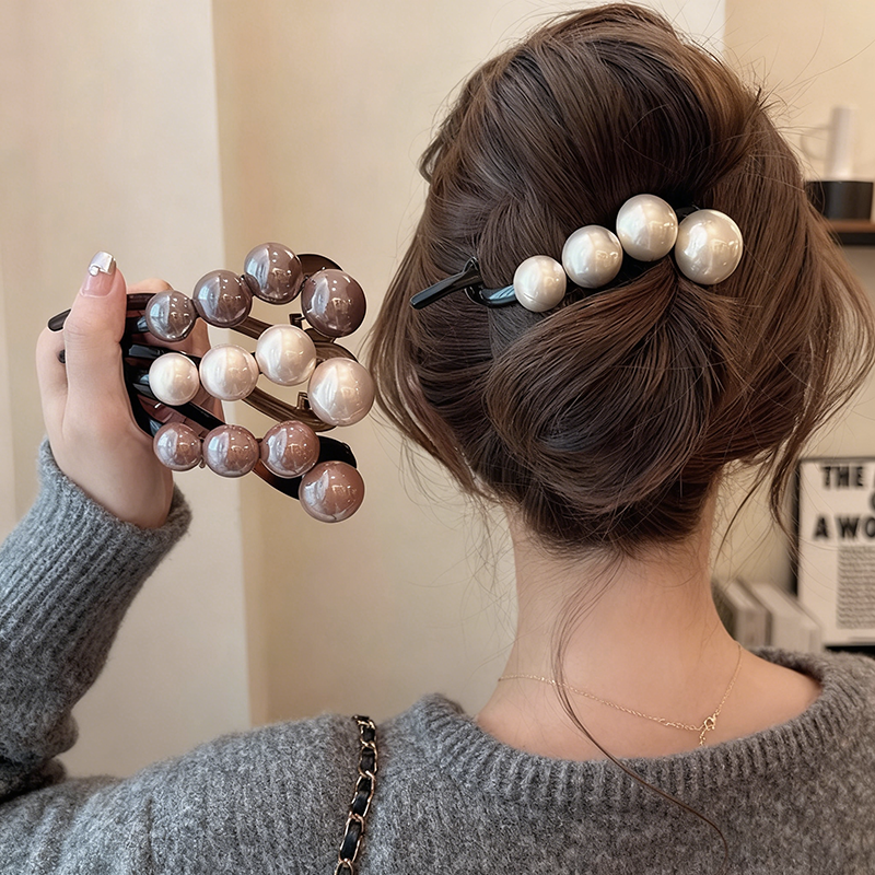 珍珠发夹女2025新款高端后脑勺一字扭扭夹大号盘发神器抓夹高级感
