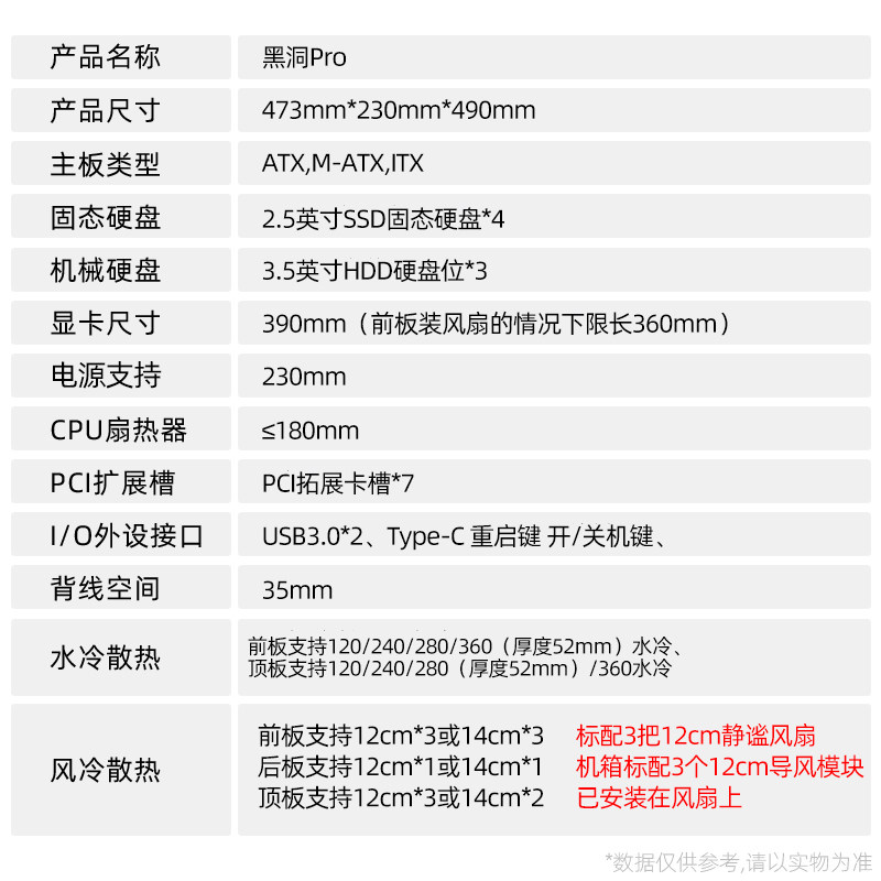 先马黑洞PRO 黑洞X无光静音降噪电脑台式机机箱ATX中塔主机箱