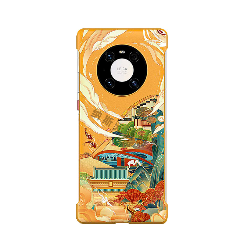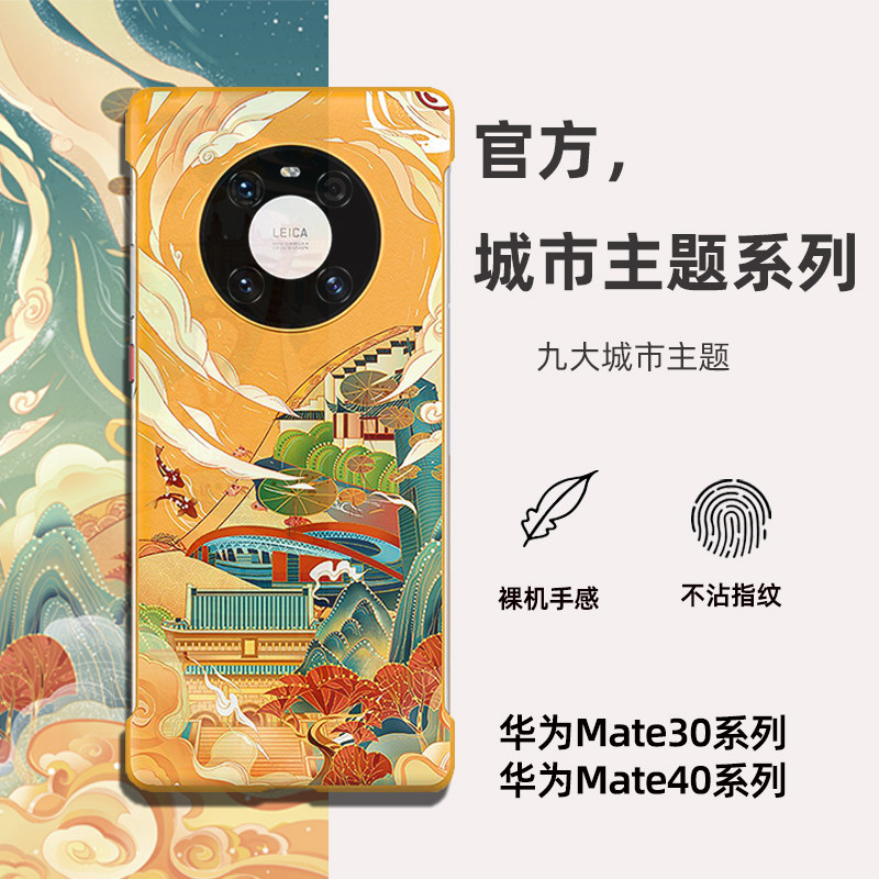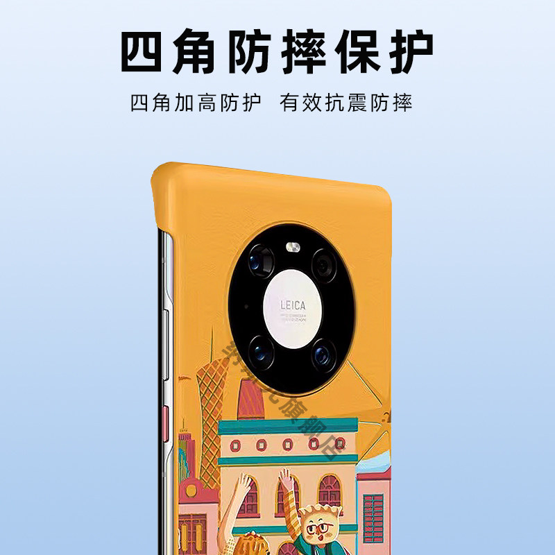同款原宿风适配装mate40E pro手机壳华为mate30无边框素皮革e防摔指纹50pro城市旅行新国潮半包边保护套