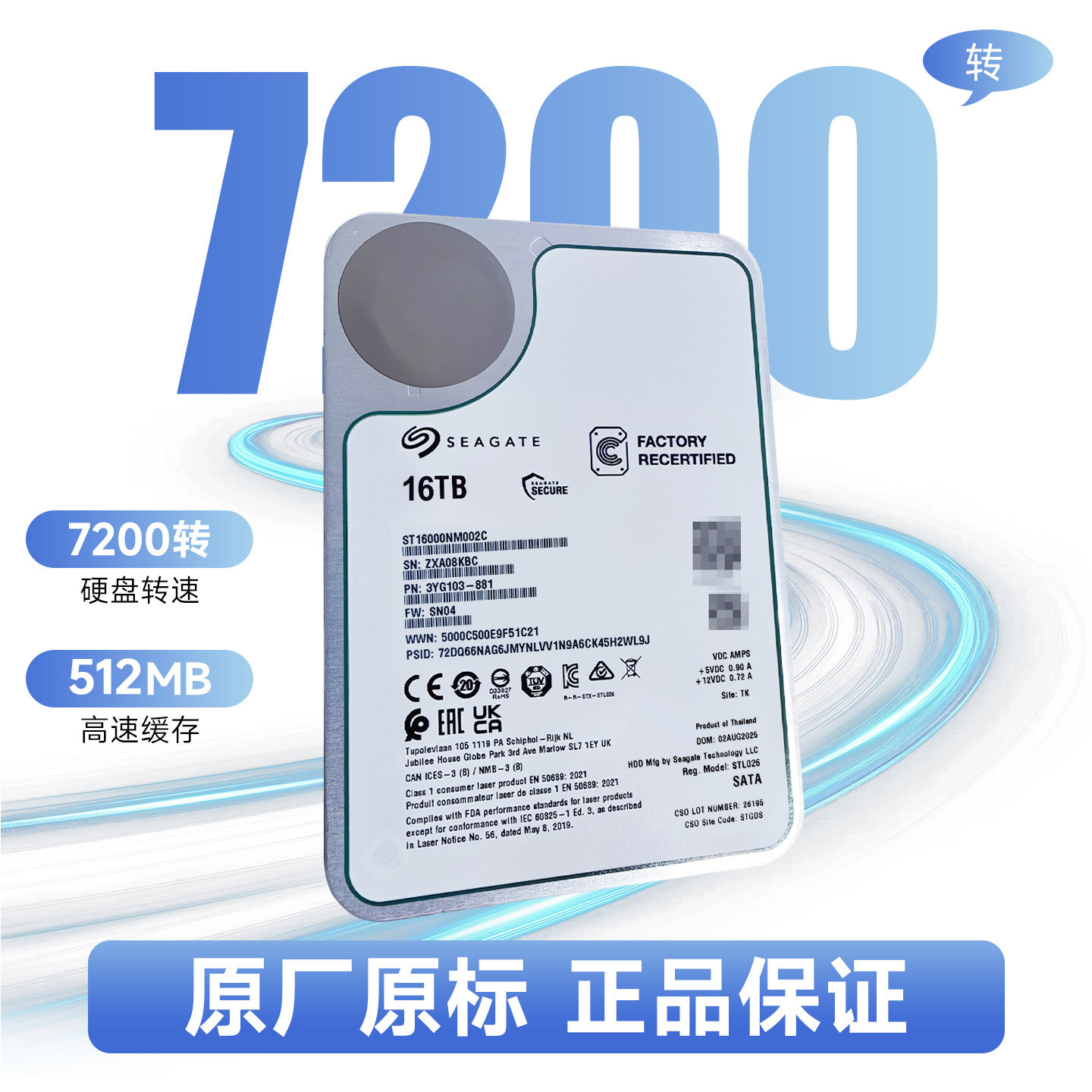 希捷银河企业级ST16000NM002C氦气硬盘16TB机械硬盘NAS服务器SATA