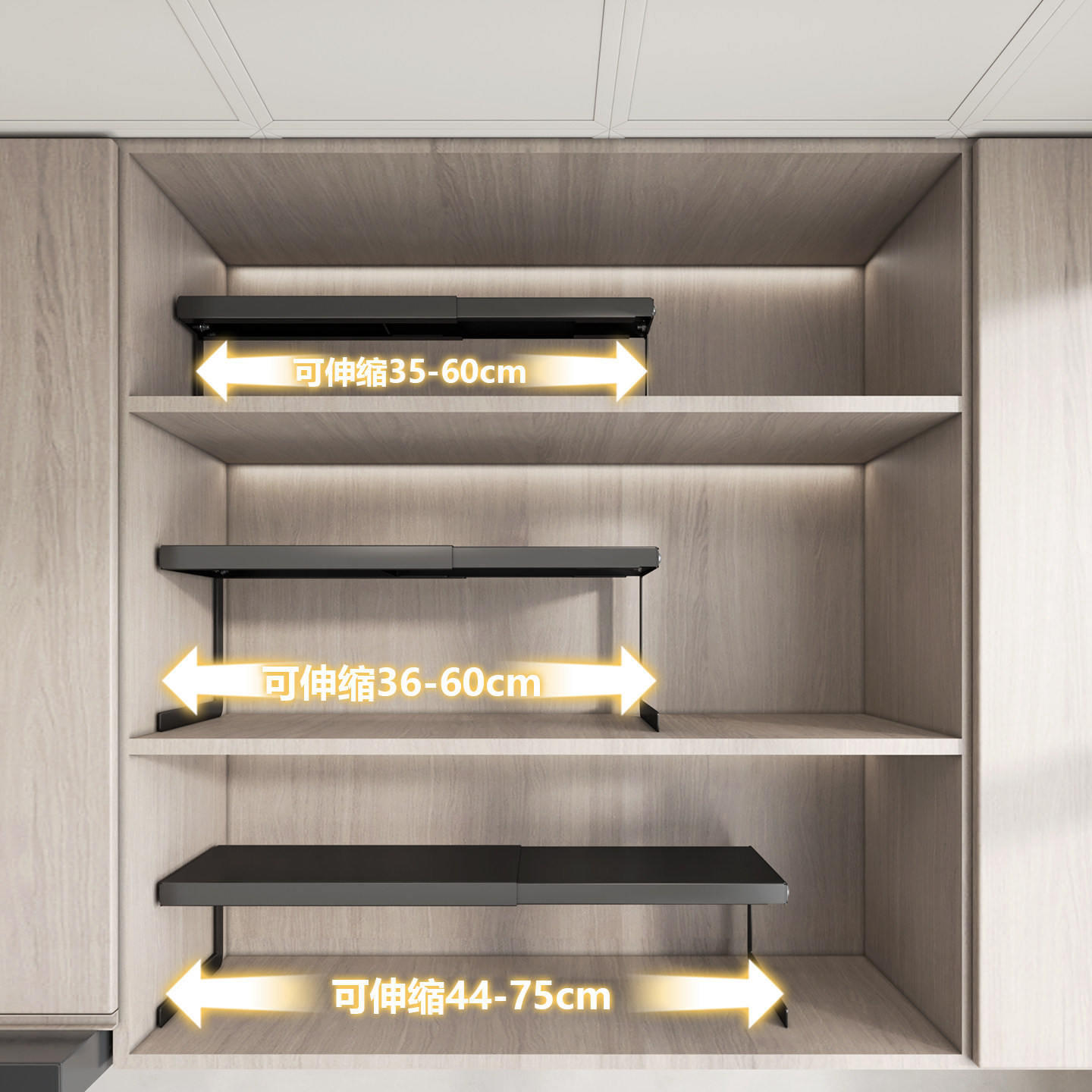 可伸缩厨房置物架柜子分层层架隔板收纳锅架窄款夹缝桌面橱柜台面