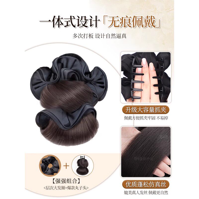 丸子头假发女抓夹花苞头发饰发圈盘发神器低扎假发包发量少蓬松