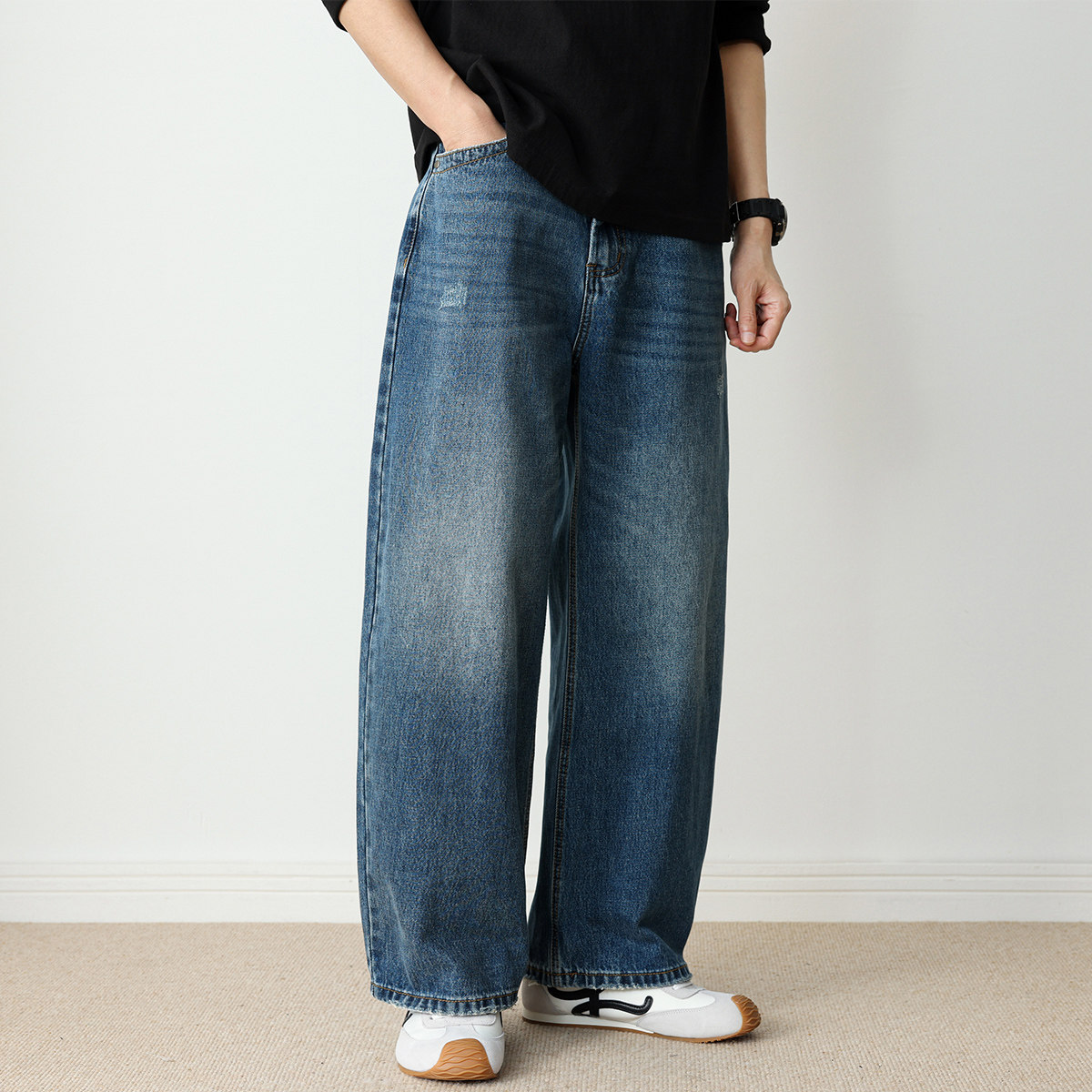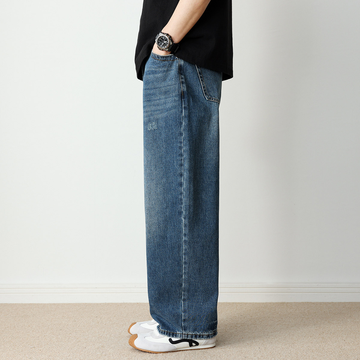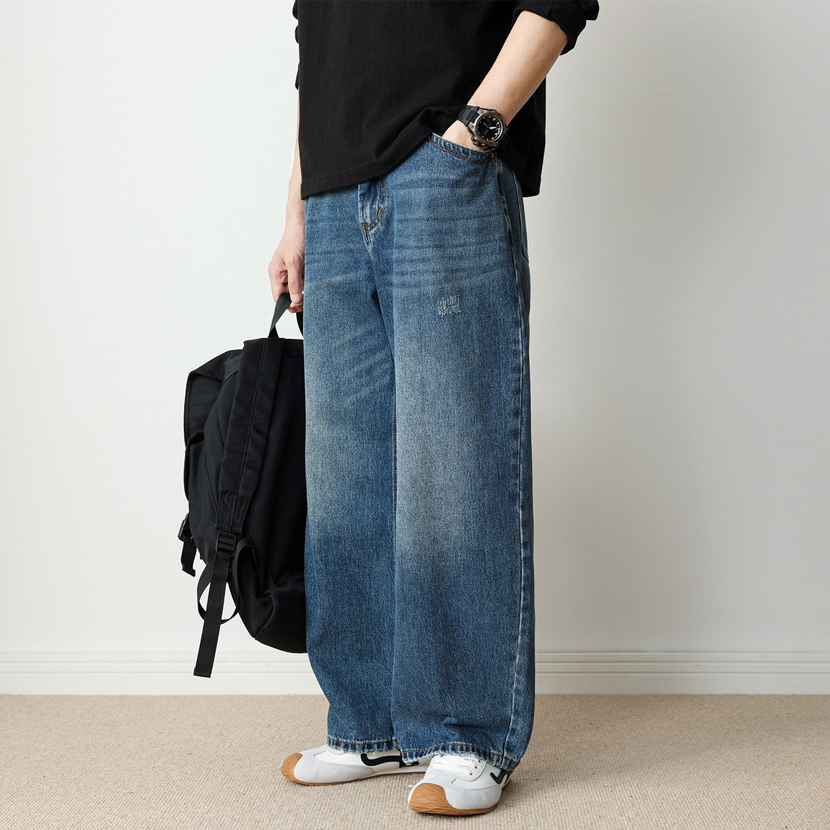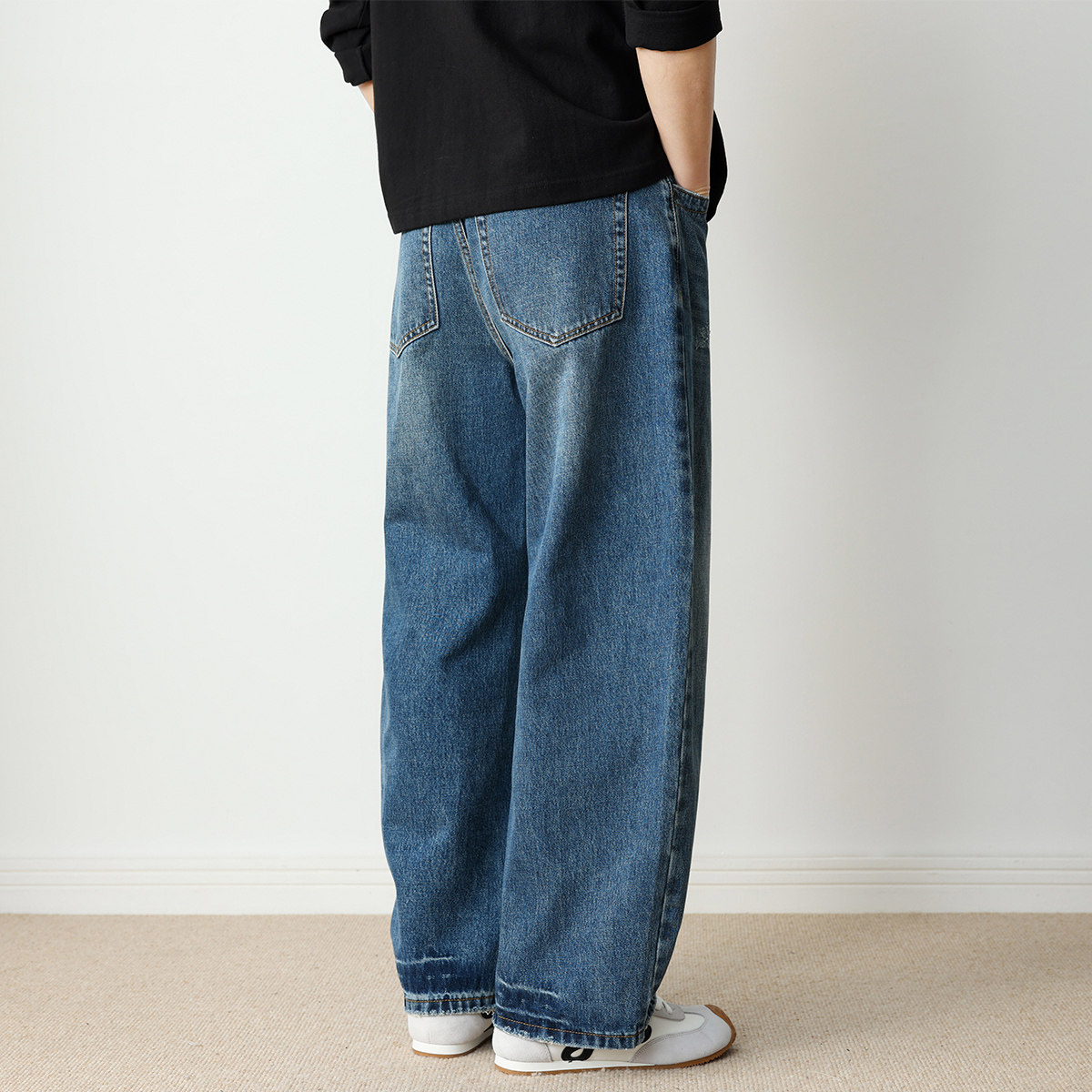 阔腿牛仔裤男士2025春秋新款美式复古宽松大码冬季休闲直筒裤子男