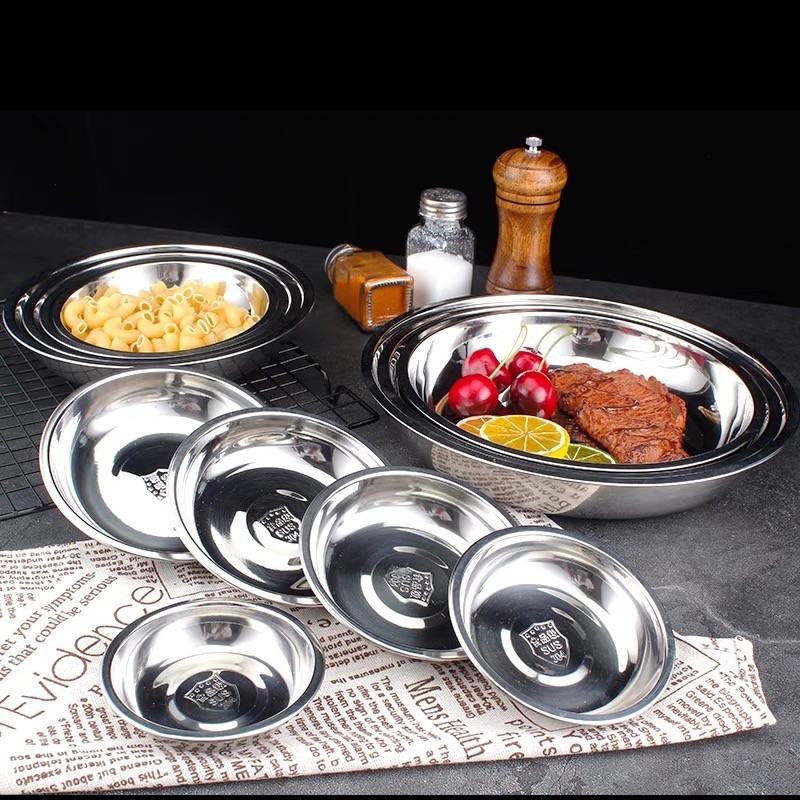 304食品级不锈钢圆盘餐盘菜碟烧烤盘子套装鱼盘深家用加深不绣钢