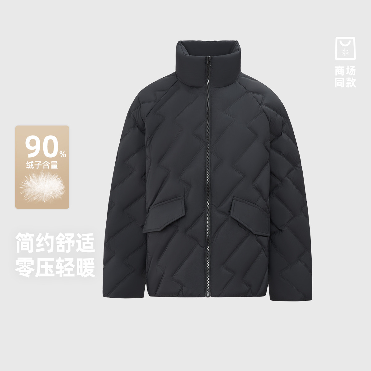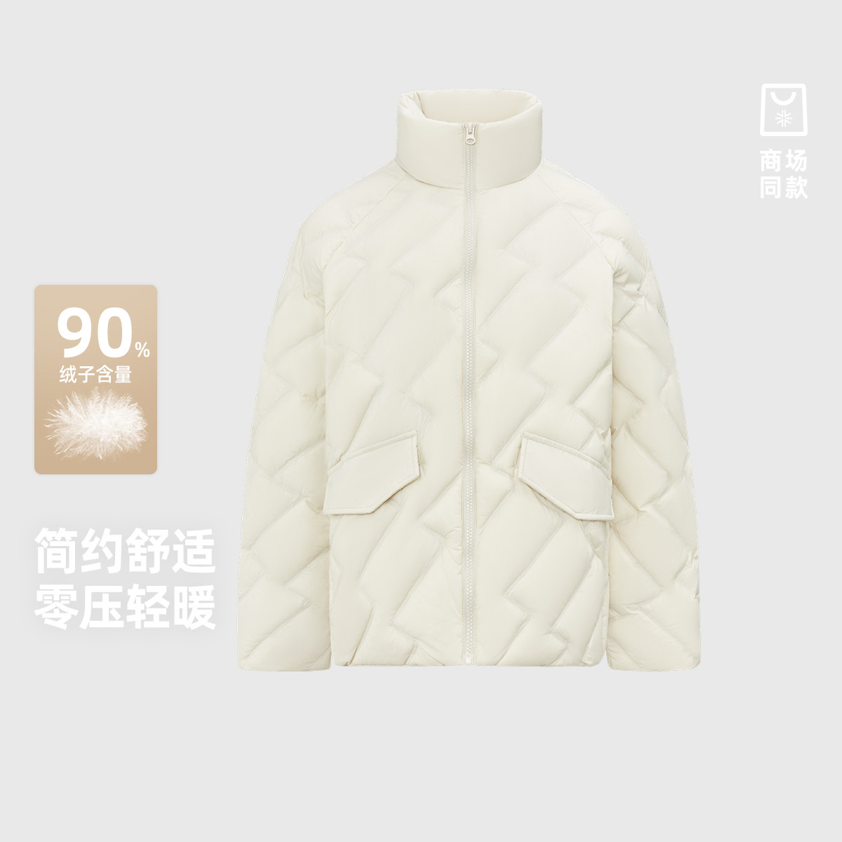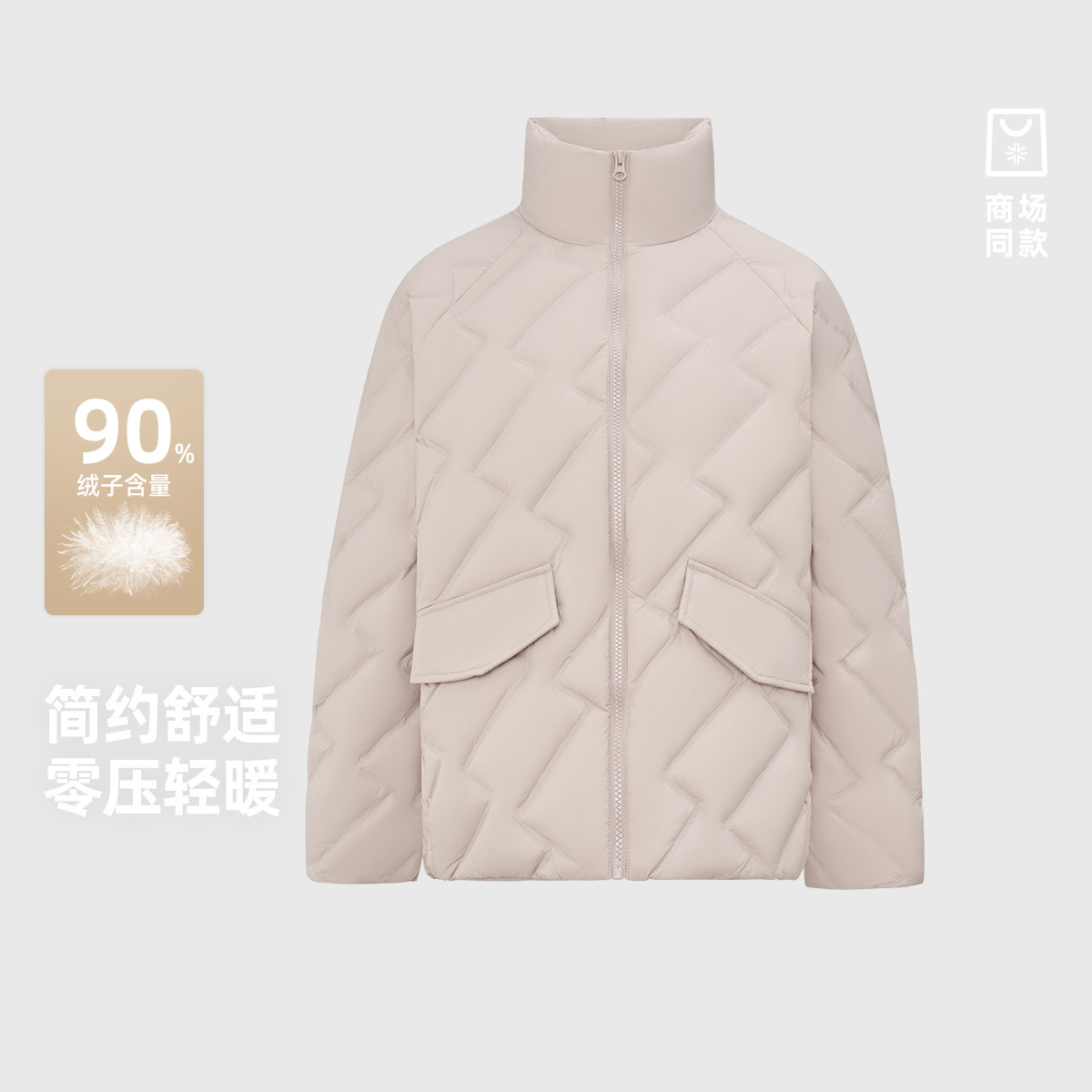 【鞠婧祎同款】鸭鸭2025年冬新款百搭短款女士纯色立领羽绒服外套