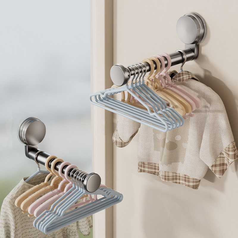 吸盘阳台衣架收纳神器免打孔家用挂钩伸缩挂衣架墙上置物架防滑