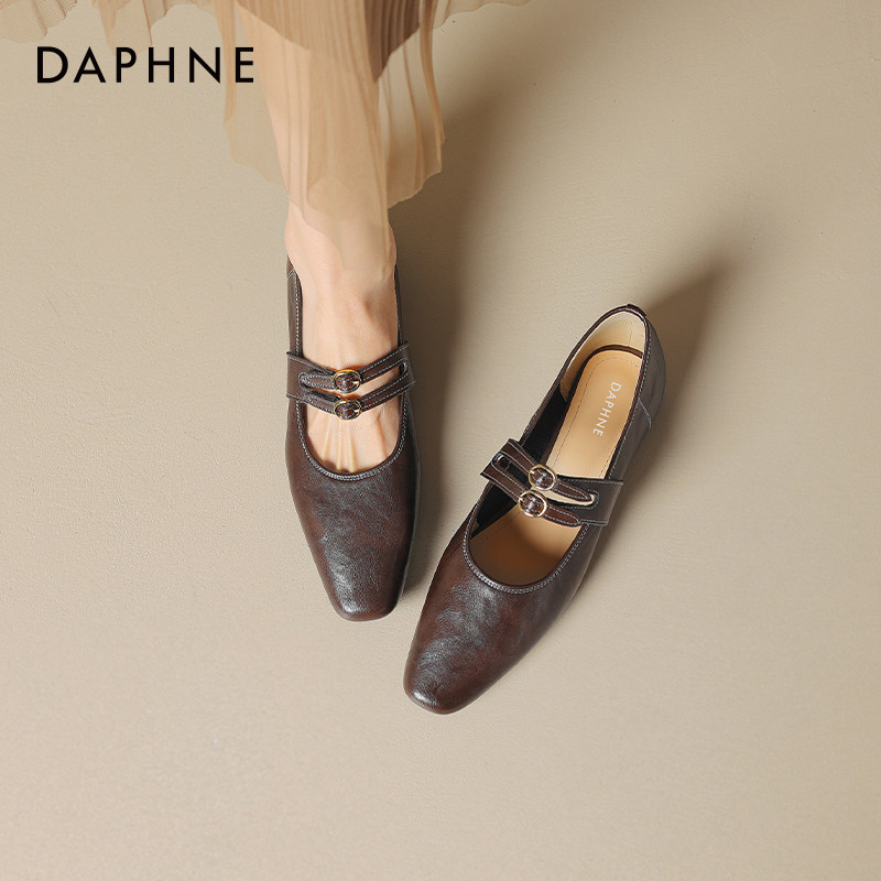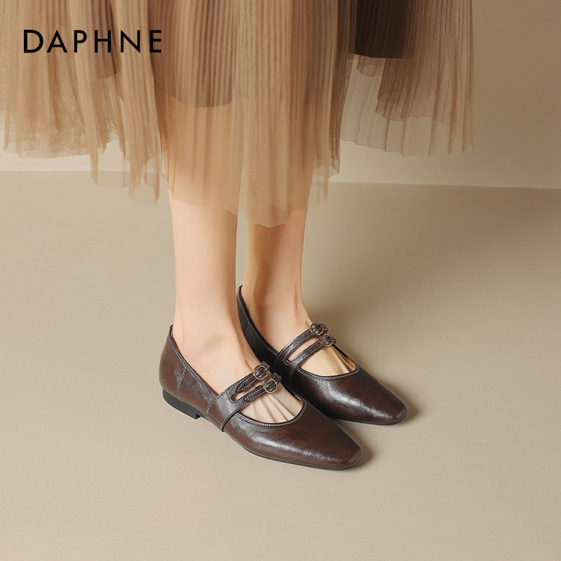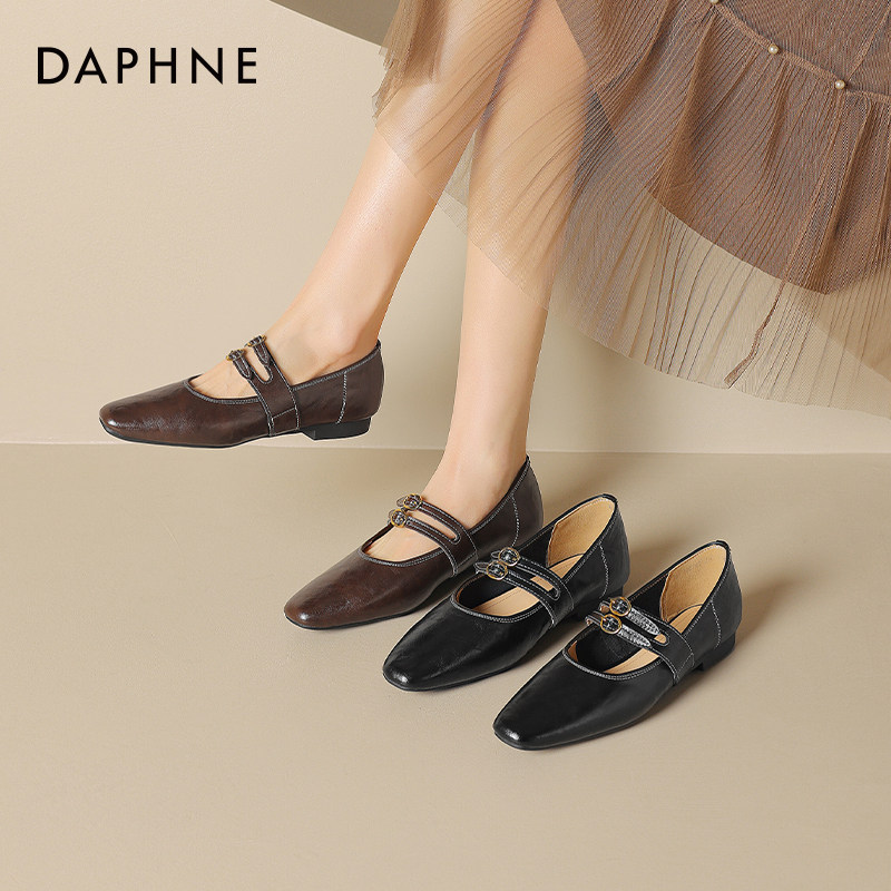 达芙妮真皮平底单鞋女2026新款春秋法式玛丽珍女鞋复古小香风皮鞋