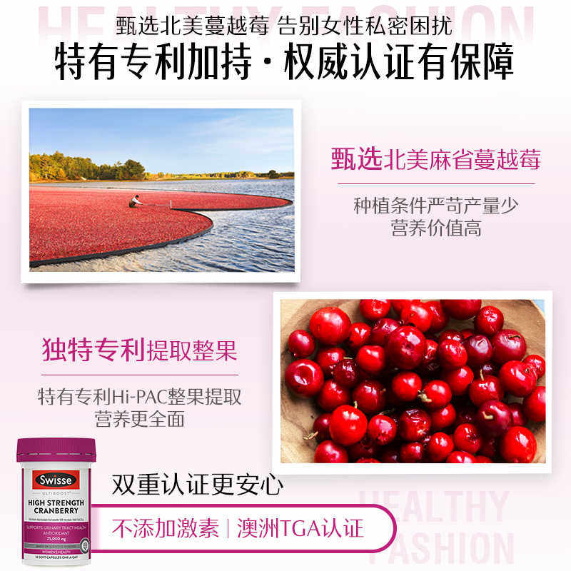【自营】Swisse斯维诗蔓越莓胶囊高浓度花青素女性保养卵巢益生菌