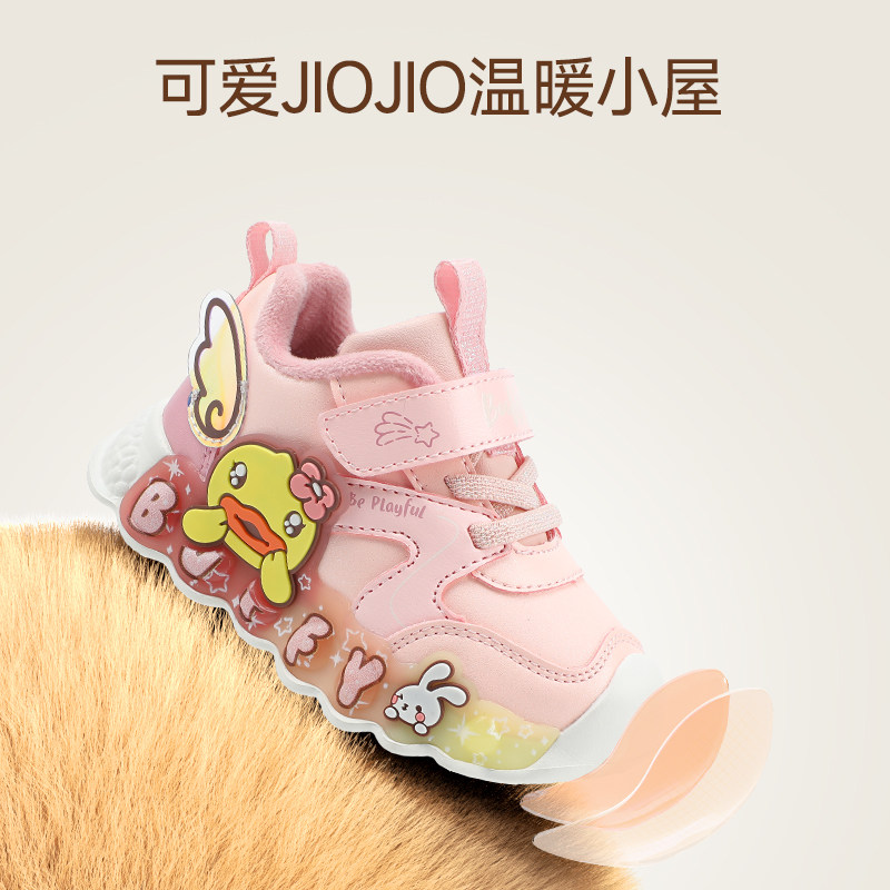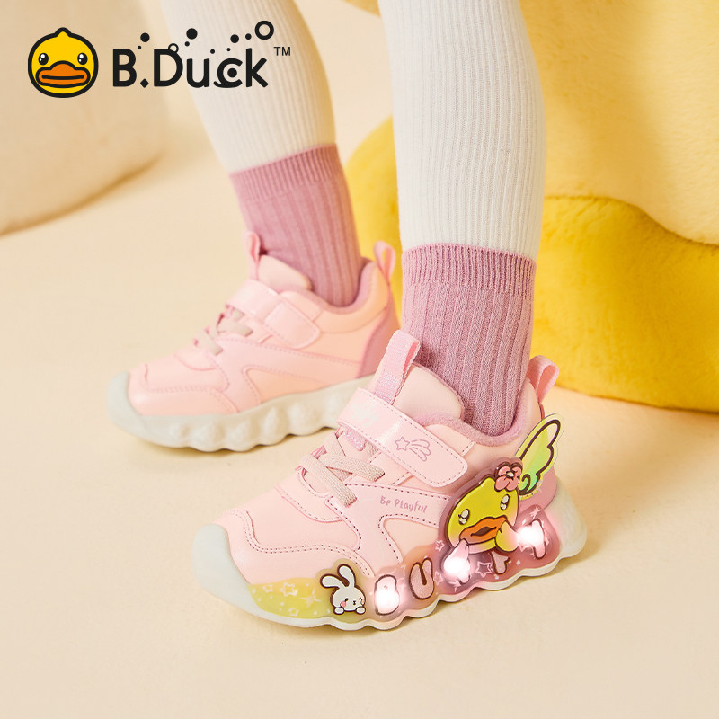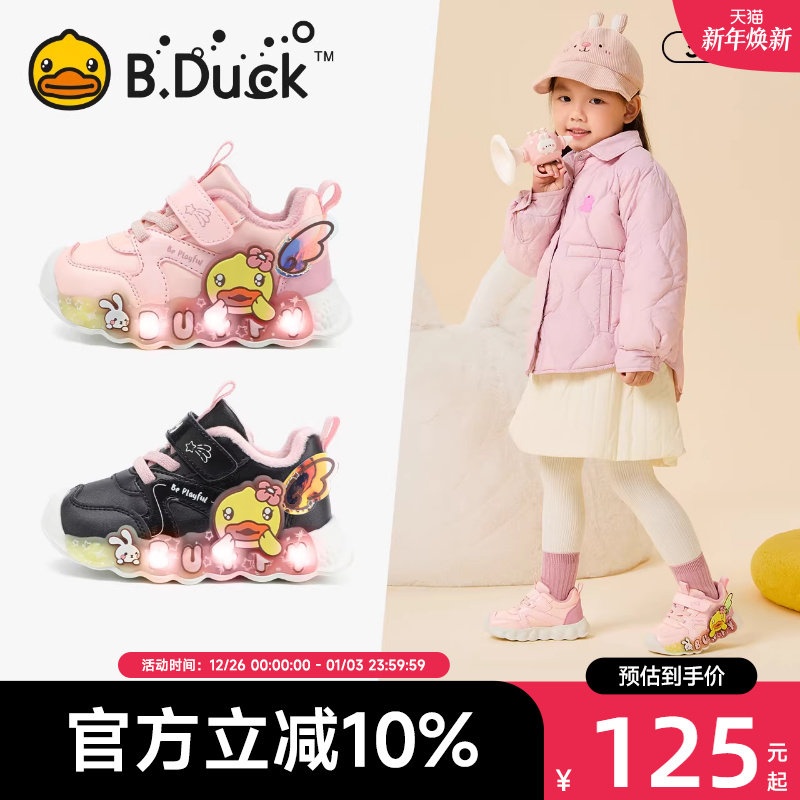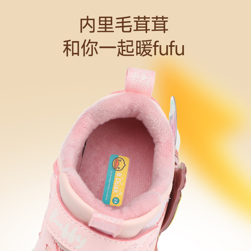 B.Duck小黄鸭童鞋女童运动鞋加绒发光宝宝亮灯鞋冬季新款儿童棉鞋