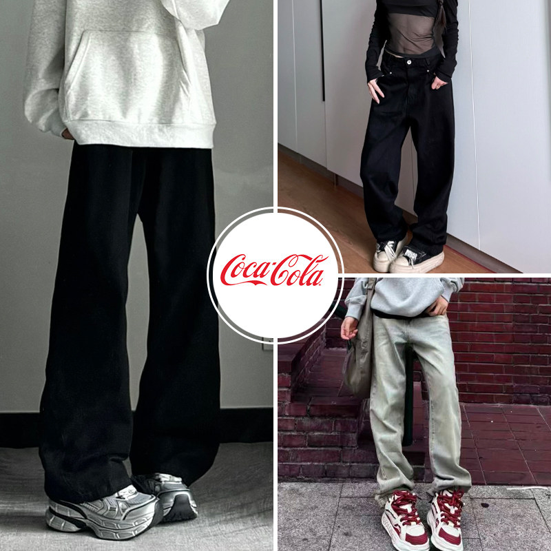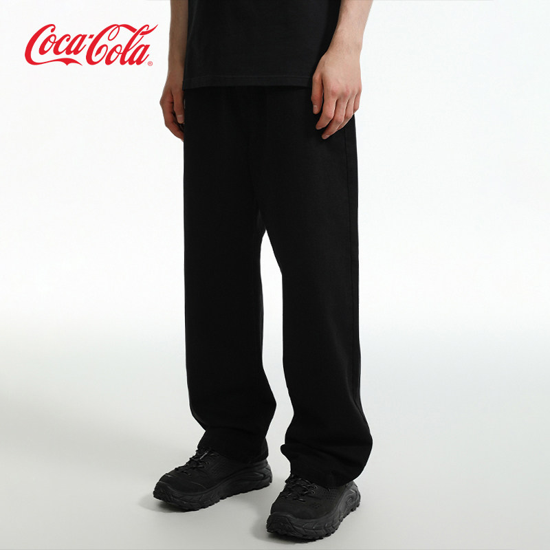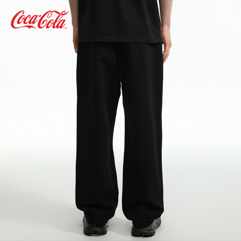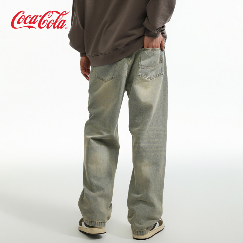 Coca-Cola/可口可乐 美式复古做旧水洗皮牌休闲直筒宽松牛仔裤