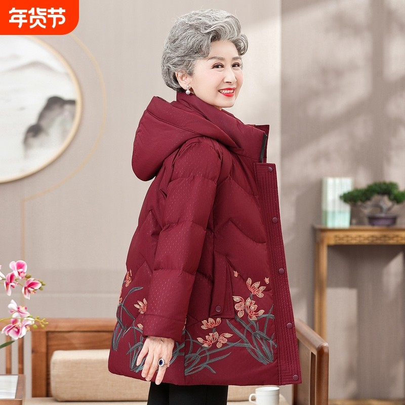 【现货】【江南故事】90白鸭绒妈妈羽绒服冬喜婆婆加厚红色中老年