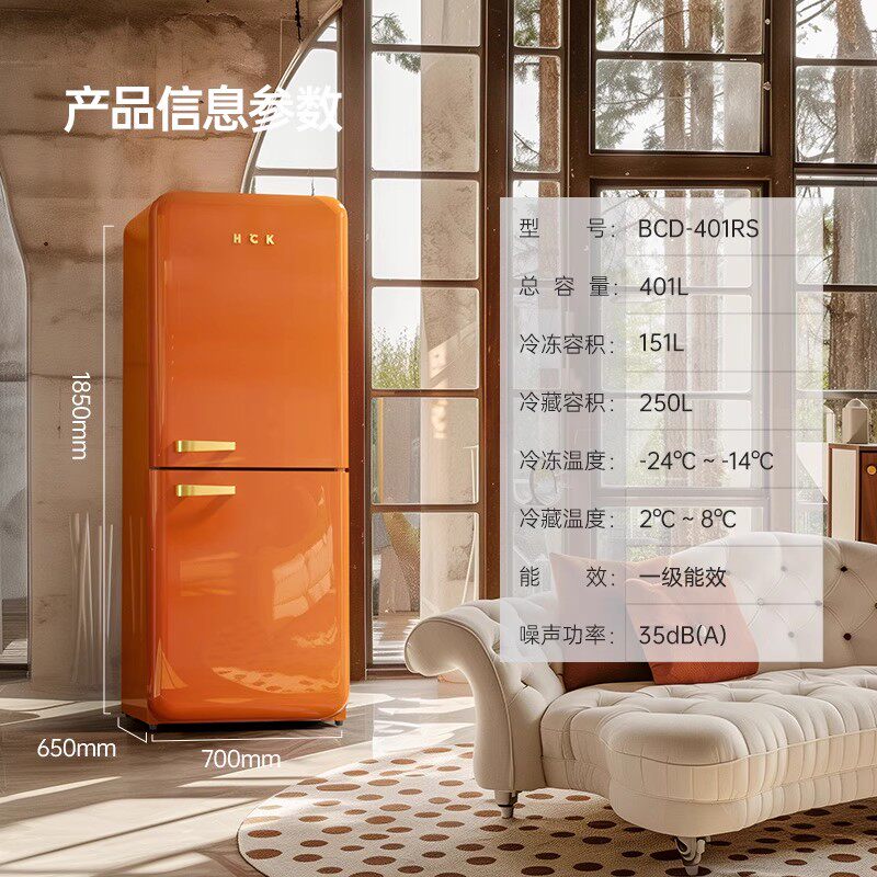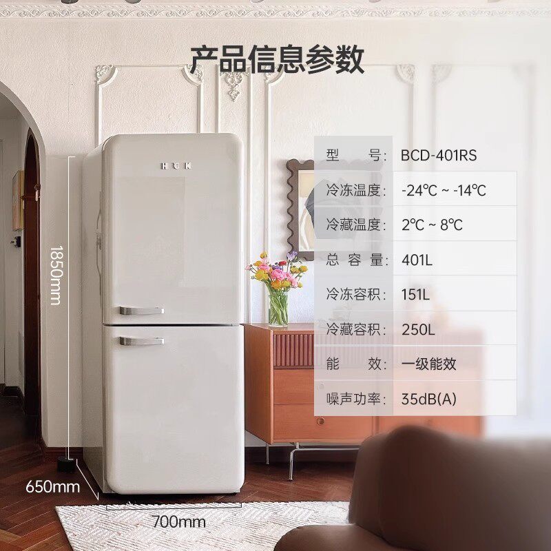 HCK哈士奇一级能效小香风双门复古冰箱家用客厅嵌入式大容量