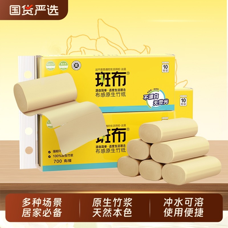 斑布卷纸70克30卷整箱竹浆本色家用厕纸卫生纸批发原生有芯印花