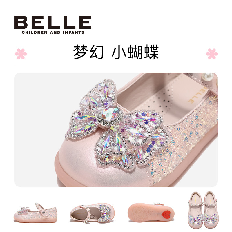 百丽童鞋女童闪灯皮鞋小女孩水晶公主鞋秋季新款儿童时尚发光单鞋