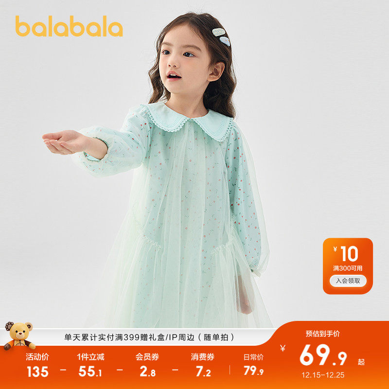 巴拉巴拉宝宝连衣裙蓬蓬网纱裙A字裙女童装2025秋季新款裙子儿童