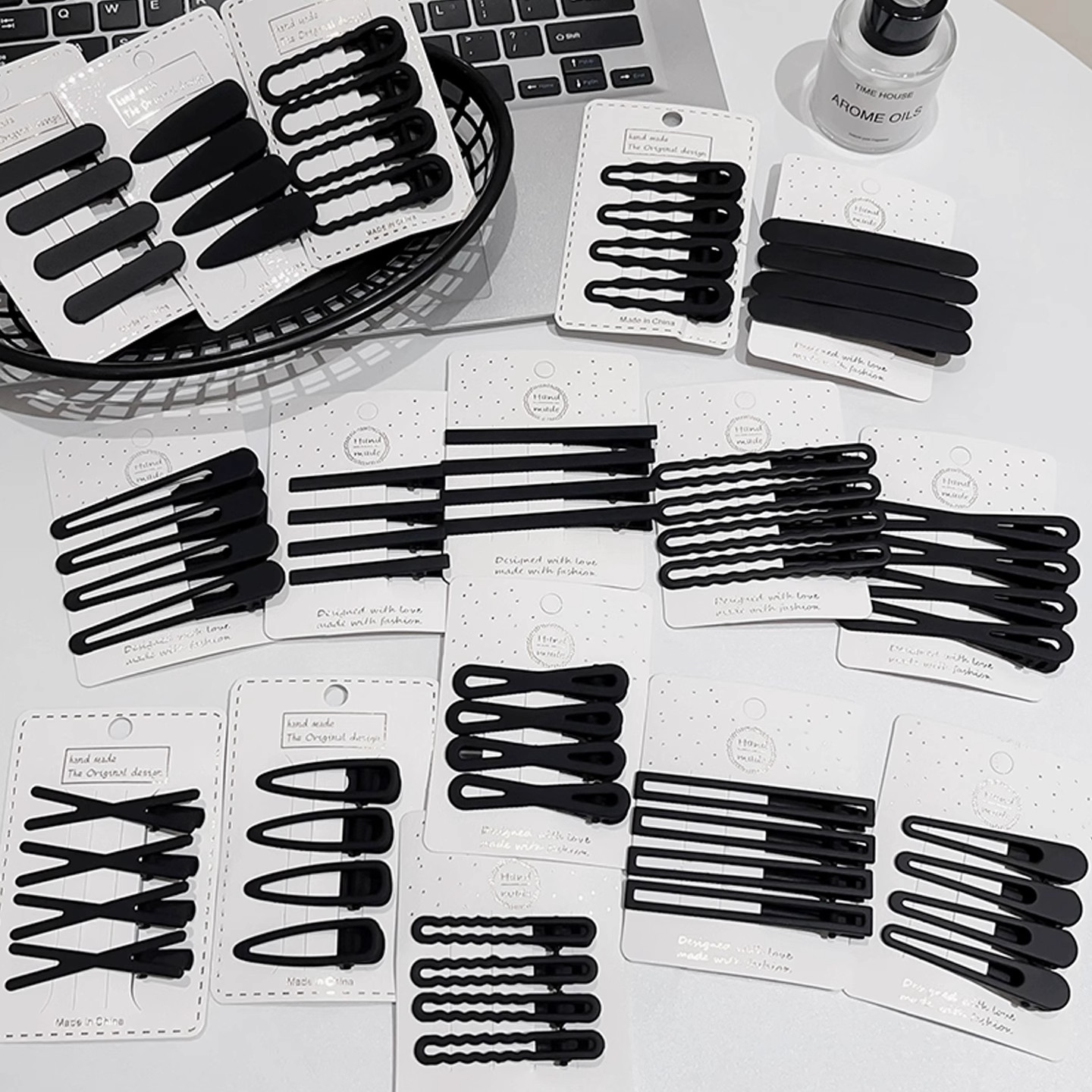 少女小金属刘海碎发一字鸭嘴造型侧边美妆发夹女发卡黑色夹子发饰