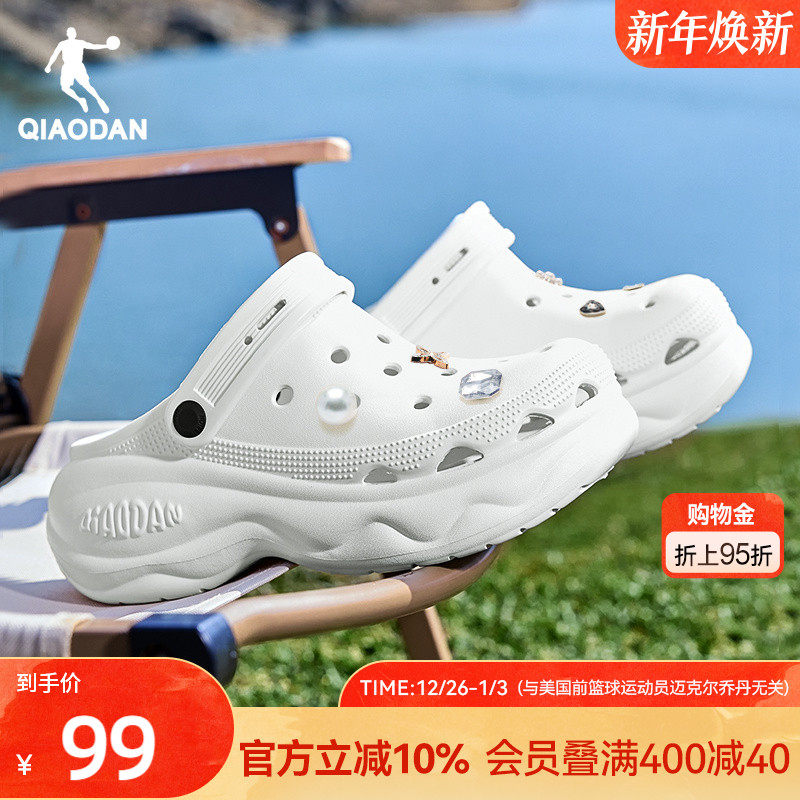乔丹汉堡洞洞鞋女2025夏季防滑透气软底白色运动鞋子厚底增高凉鞋