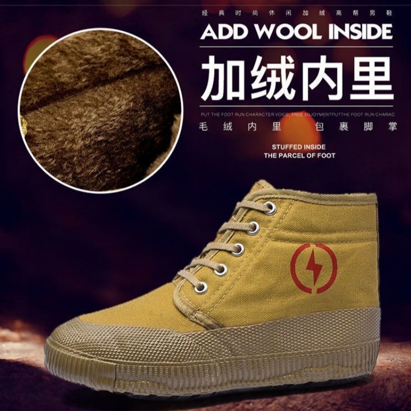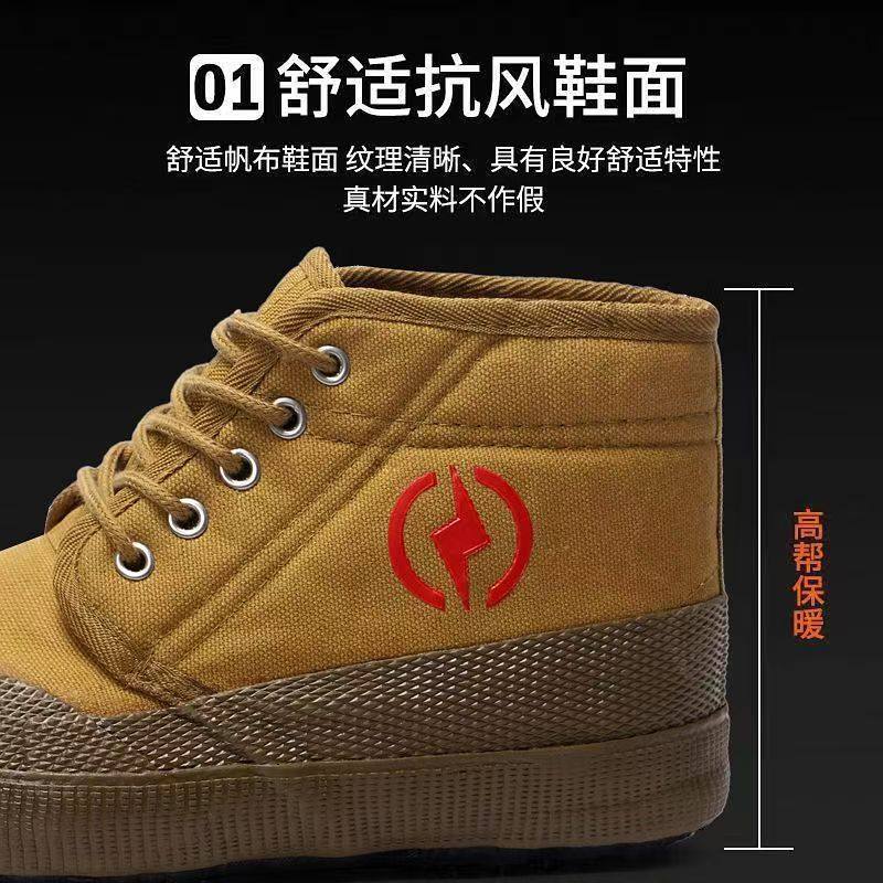 冬季加绒电工鞋5kv/10kv绝缘劳保鞋高帮大棉解放鞋子防滑耐磨帆布