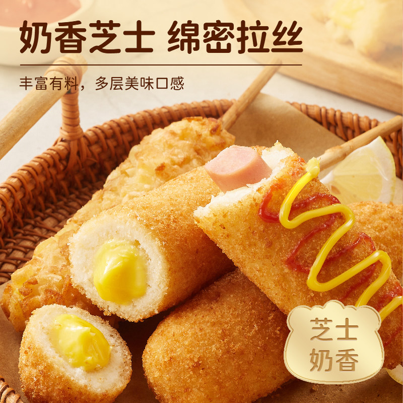 林饱饱爆浆芝士热狗棒拉丝烤香肠空气炸锅半成品芝士肠微波炉食材