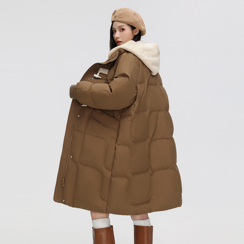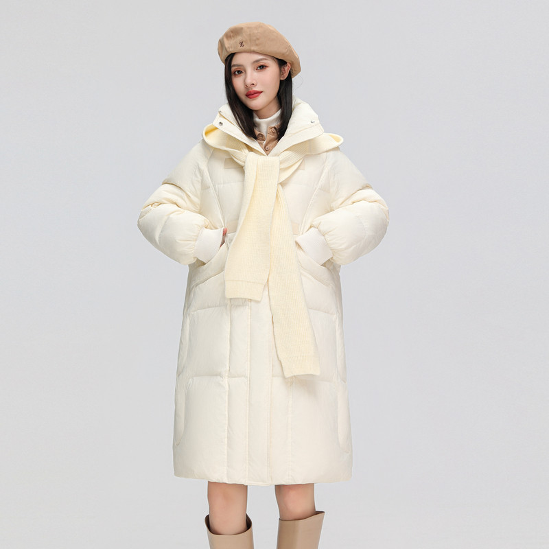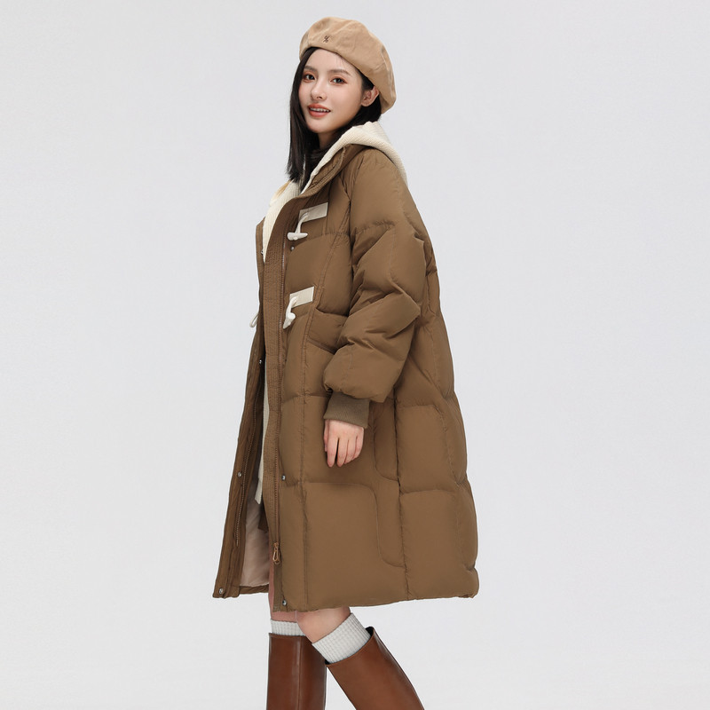 雪中飞2025秋冬新款女士中长款羽绒服可拆卸帽针织牛角扣保暖温柔