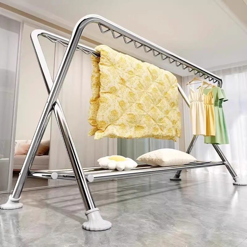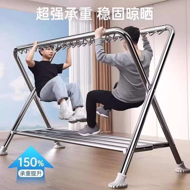 SHESHOME晾衣架落地折叠多功能家用室内不锈钢衣架阳台婴儿晒衣架