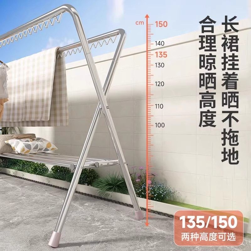 晾衣架落地折叠室内家用阳台卧室不锈钢室外凉伸缩杆式晒被子神器