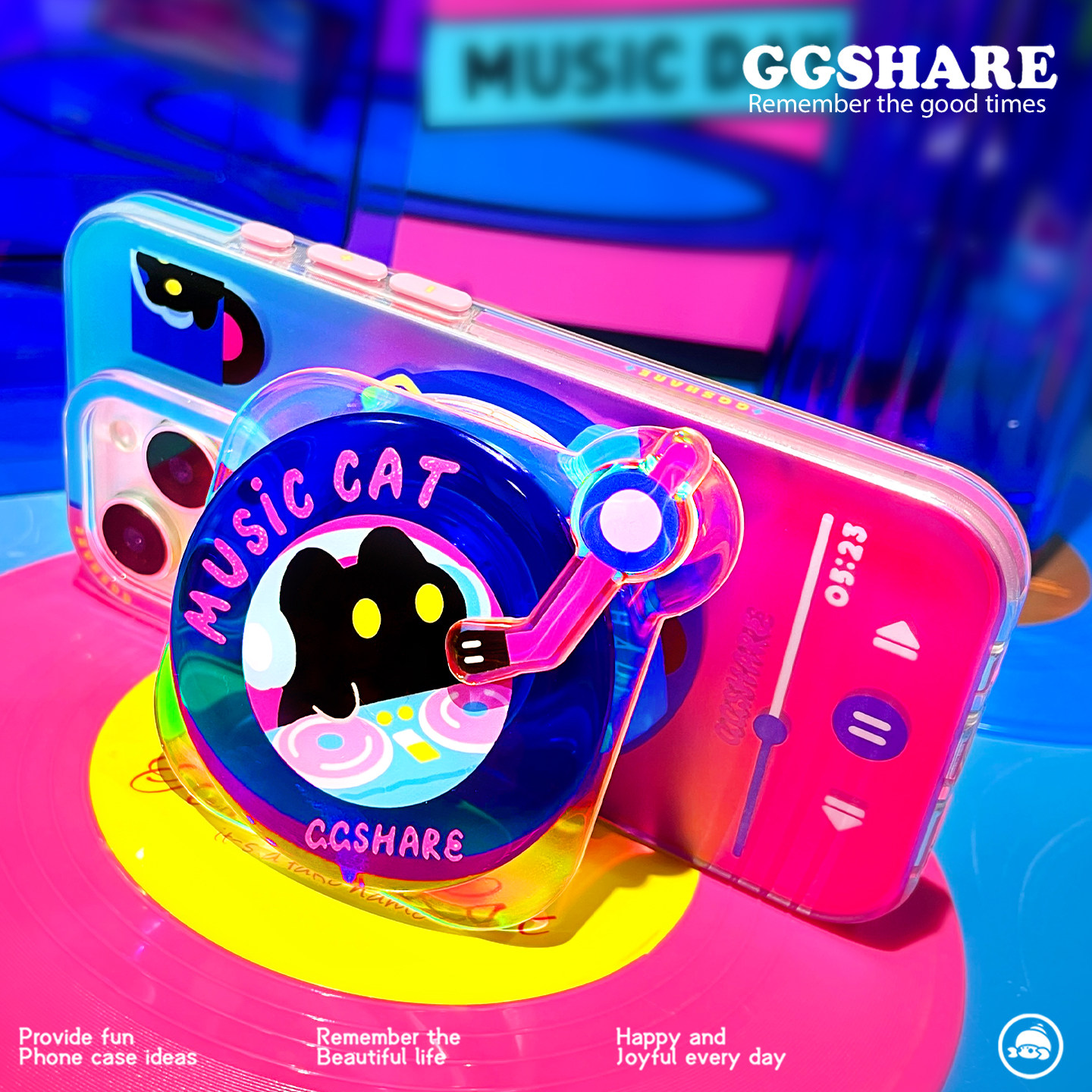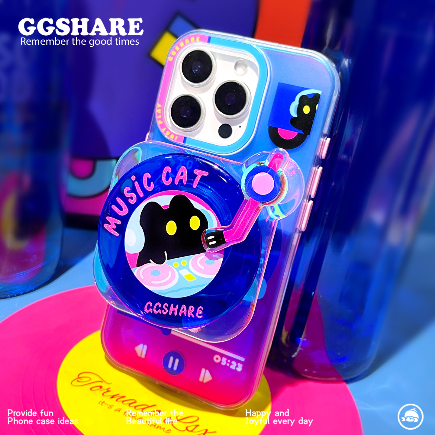 GGSHARE寄居蟹唱片猫iphone17手机壳适用苹果16带磁吸支架 15promax手机套14新款13高级感原创双层镭射手腕绳