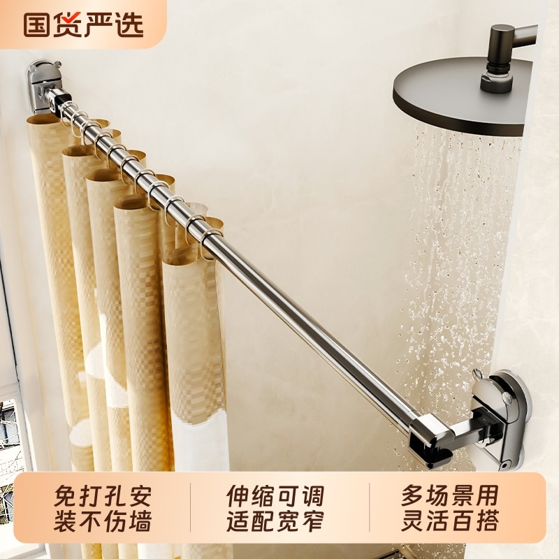 吸盘式浴帘杆窗帘伸缩杆免打孔家用干湿伸缩晾衣杆收纳晾衣置物杆