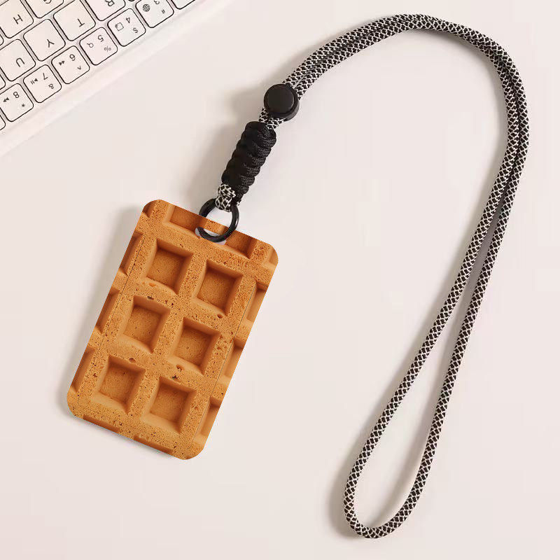 方块华夫饼干卡套饭卡公交地铁门禁工牌证件保护套搞怪挂包防丢绳