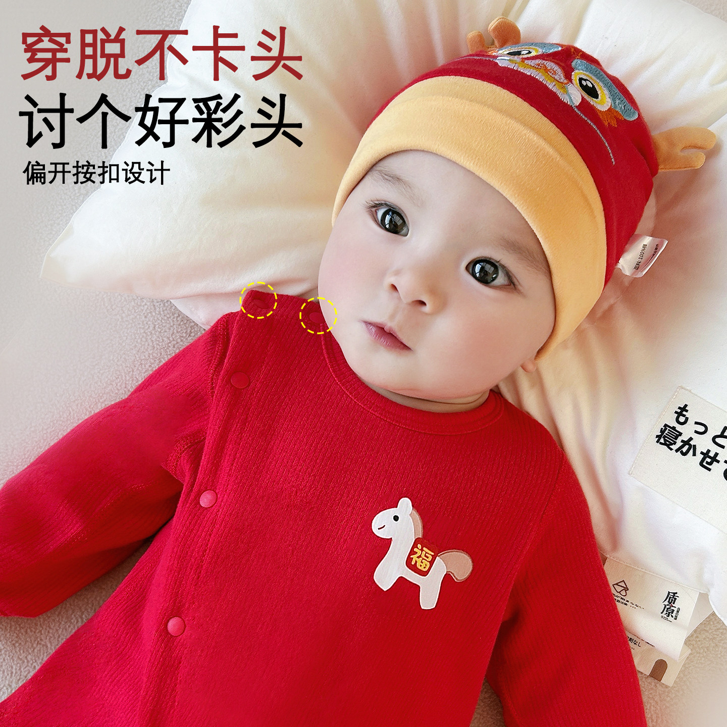 婧麒新生儿婴儿衣服秋冬夹棉满月纯棉初生宝宝秋装连体衣a类爬服
